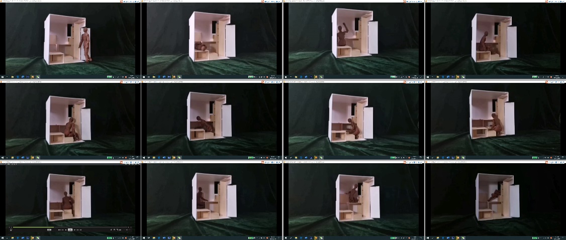 在评图结语中,朱起鹏表示,部分同学在设计中,通过形体设计完成空间划分,达到了空间层面的设计。任中琦表示,通过拍摄模型视频,以“定格动画”的方式,展现行为、动作与空间的互动,理解行为连续性,适合低年级教学,在日后线下教学阶段可以持续使用。金秋野表示,设计题目的设定较前一年更精密、指向性,成果有相应提高,但是小空间内的具体功能要求,限制了空间形式的发展,二者矛盾需要解决。视频摄影方式的设定需要强化,提高成果完成度。