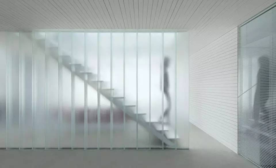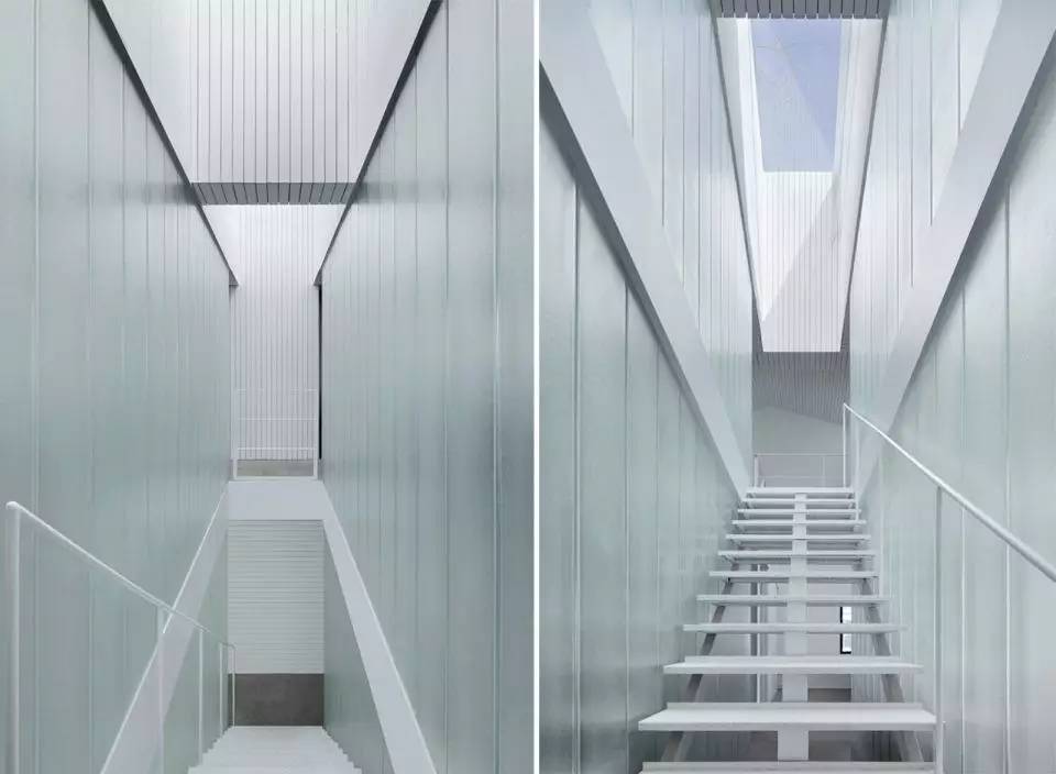 例如半壁店办公室改造的项目也是在追求一种朦胧且多层次的光线效果。我们在中央楼梯间上方做了一个天窗,从天窗洒下的光线经过楼梯间两边的U形玻璃形成了漫反射光线。“楼梯光间”不仅能透射多种日光状态,到了晚上也会有温暖的灯光映出来。还有,在理发店的项目里,我们也是想通过帘幕制造一种漫反射光线,让理发空间显得更加细腻和丰富。
