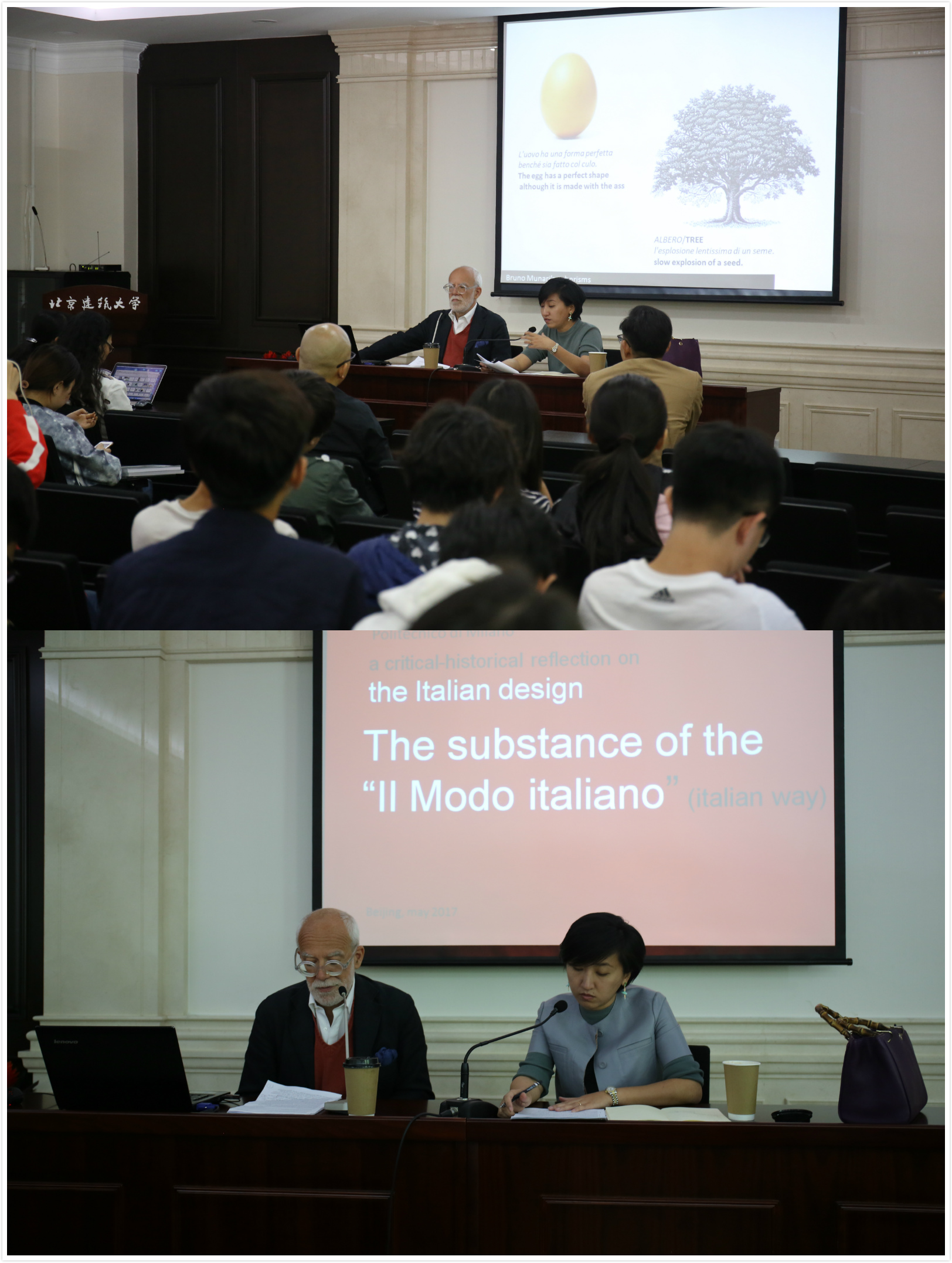 5月5日在西城校区教1楼第八会议室由中国建筑学会和威廉希尔体育联合主办,威廉体育williamhill设计学系承办了两场精彩的讲座——“意大利风格——意大利设计文化”与“建筑手绘艺术与设计快速表现”。第一场讲座邀请的米兰理工大学设计学院全职教授、室内设计与展示设计博士生导师组成员博佐尼先生为公司师生做了题为“意大利设计文化”学术讲座,特邀清华大学美术学院副教授周艳阳担任意大利语翻译。博佐尼教授为在座师生介绍了意大利设计的发展历程,针对意大利设计界对传统与现代的理解与实践,通过经典设计作品来阐释意大利的建筑设计、工业设计、展示设计的发展创新。博佐尼教授还回答了同学提出的问题。