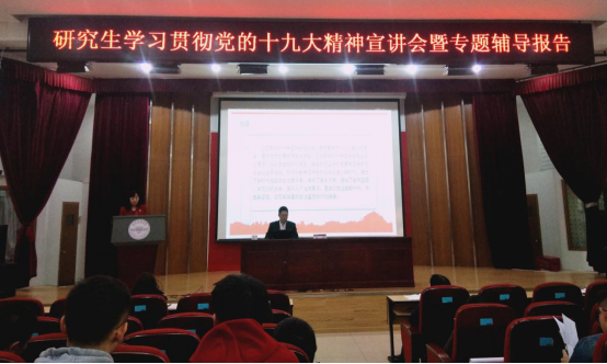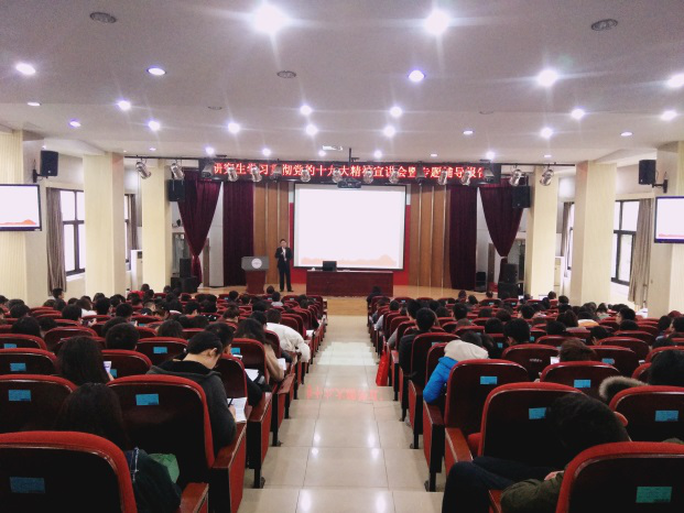 孙一平老师用慷慨激昂的报告诠释了什么是“党的十九大精神”。他以“习近平新时代中国特色社会主义思想”是十九大报告的灵魂为主线,从理解十九大报告精神的思路、分析习近平新时代中国特色社会主义思想的框架、学习习近平新时代中国特色社会主义思想的几点体会等内容展开阐述。