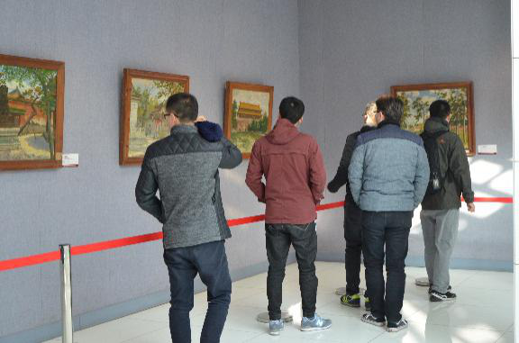 党员首先来到的是鲁迅故居,映入眼帘便是“再忆北平——辟谷列维奇油画作品展”,其主题为“儿时的老北京的样子”,画展作品作者是俄罗斯画家辟谷列维奇,20世纪初随白俄流亡侨民队伍从黑龙江边境迁入中国。这一批珍贵的画作已在中国文化遗产研究院保存了70年左右。历经岁月洗礼,经过精心的保护和修复,最终展示在鲁迅故居中的博物馆,每一副油画中的内容经过古迹和古建的查证,弥补了中国部分历史资料的缺失,展品对于国人来说意义重大。