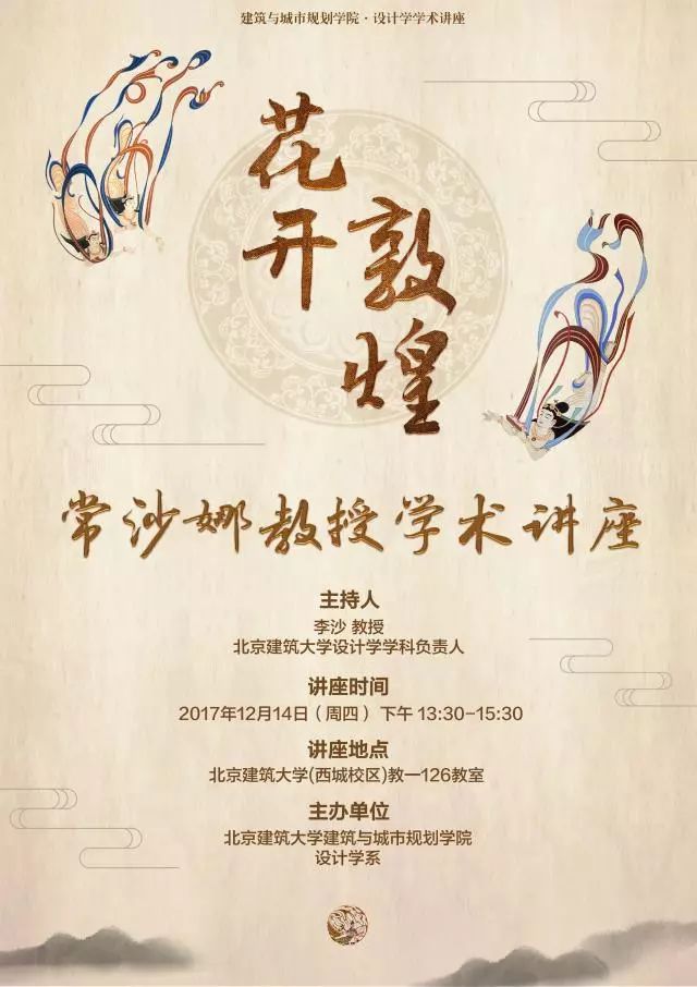 2017年12月14日下午,威廉体育williamhill·设计学学术讲座(第六期)——常沙娜教授学术讲座“花开敦煌”在教一126教室顺利举行,讲座由李沙教授主持。本次讲座中常沙娜教授围绕敦煌在世界艺术史上的地位,以及它对现代设计学的影响展开讲解,并以大量的设计实例,诠释了优秀的中国传统文化真谛,令全场听众为之动容。