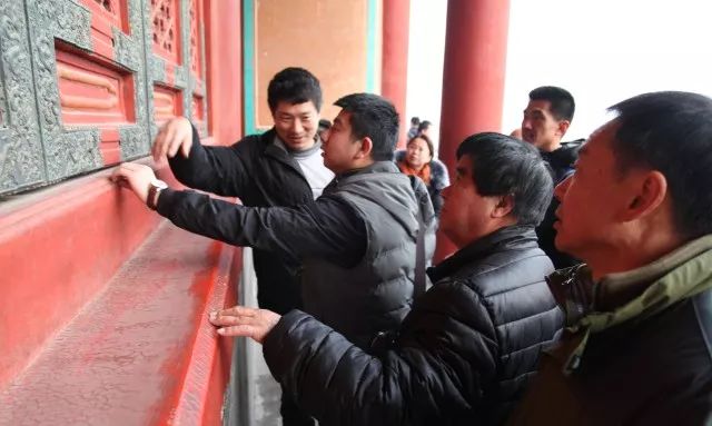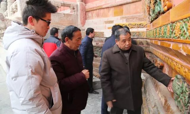 首先,在参观“紫禁城营造与保护”展的过程中,狄雅静主任讲解了“故宫古建守护者”单士元先生供职故宫博物院74年的成就与品格。随后,学员们参观了世界记忆遗产“样式雷”家族的概况,作为清代紫禁城扩建、改建、重建的主体,他们按照则例规矩,结合建筑特点进行设计,绘制图样并制作烫样,足见样式雷家族历代相承的才华与智慧。之后,沿着故宫中轴线来到太和殿、中和殿、保和殿、交泰殿、乾清宫和坤宁宫等宫殿和御花园调研,亲身感受世界文化遗产故宫古建筑群的魅力,并对故宫营造技艺中的大木作、小木作、瓦作、砖作、石作、土作、油作、彩画作、搭材作、裱糊作进行实地调研,并对墁地、台基、石雕、墙身、砖雕、油作、彩画、琉璃等现状进行分析,老师的讲解和传人间的提问及相互讨论非常热烈,开阔了视野,坚定了民族文化自信,学员亲身体验大国工匠的精华而感叹:心灵手巧功成美,才熟技奇物质精。