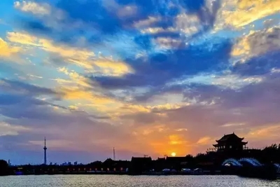 在龙亭湖的牵引下来到御河边,便可看到被缀上滴滴闪闪的亮堂的光的七盛角,在大气与厚重的建筑内融入江北水城的灵性,传承宋元开启的市井文化的七盛角,可谓是开封人气最高的地方。在金色荣光下仿佛一座孤傲的城,不喧闹,更不寂寥。有着自成一派的人间烟火气与尽透的散漫优雅。华灯已上,笙歌渐起。在河边吹吹风,看一看晚间的七盛角,看灯火辉煌。碰上来往的行人轻声谈笑,一字一句,说着七盛角的夜色渐浓,七盛角的景致幽深。横穿御河的11座宋式桥梁,使开封御河成为国内连接桥梁最多的城市水系,曲蜿流畅的河道,绚丽多姿的两岸景观,到了夜晚,更在灯光的映衬下无比迷人。