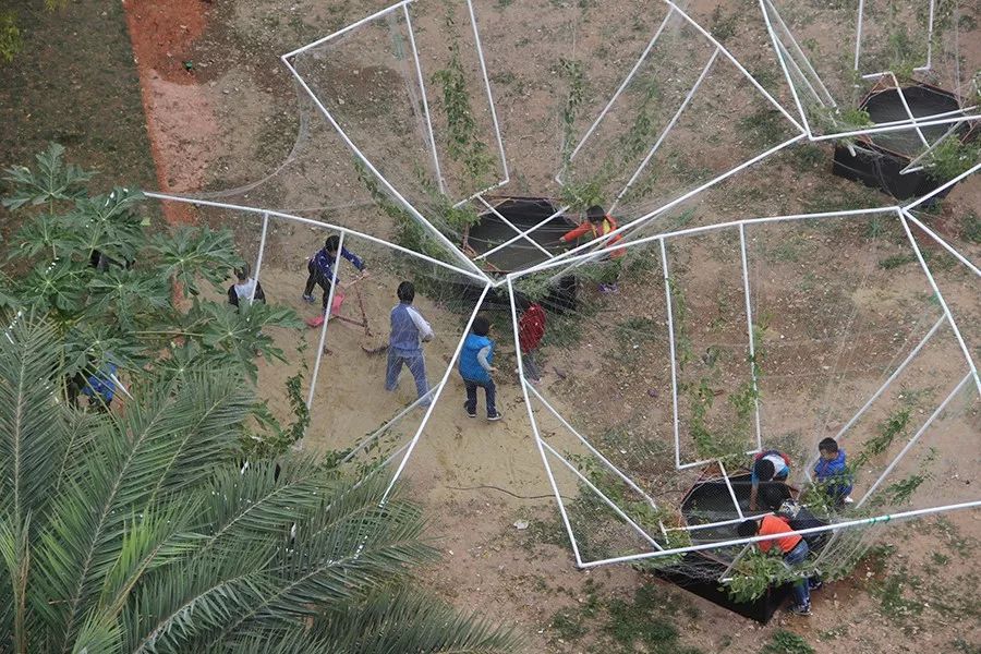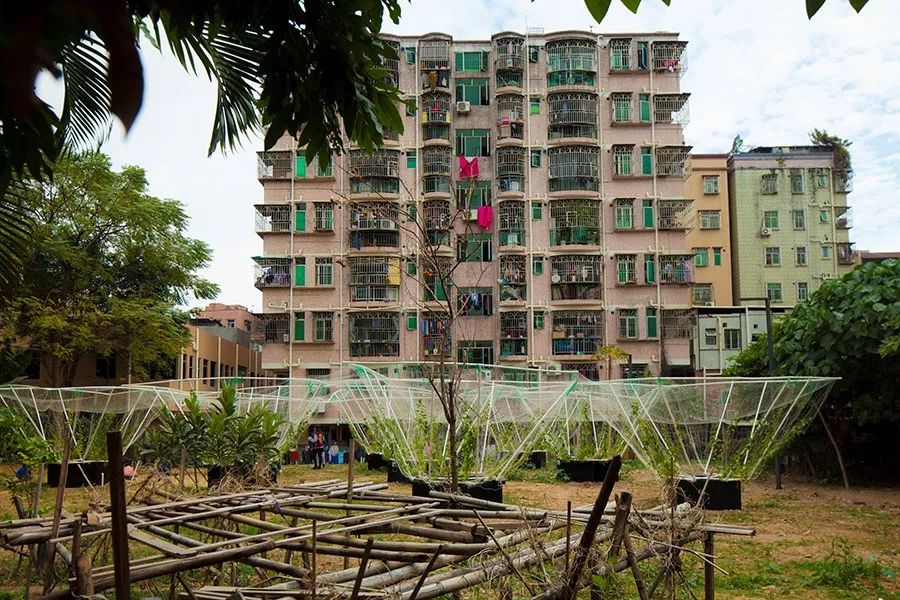 威廉希尔体育兼职教师司敏劼及其未来乡土工作室汇合建大建筑实验班151的三名员工所创作的作品“天空农场”在南头主展场展出。