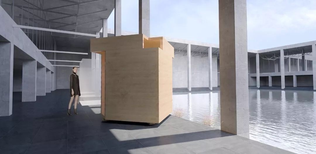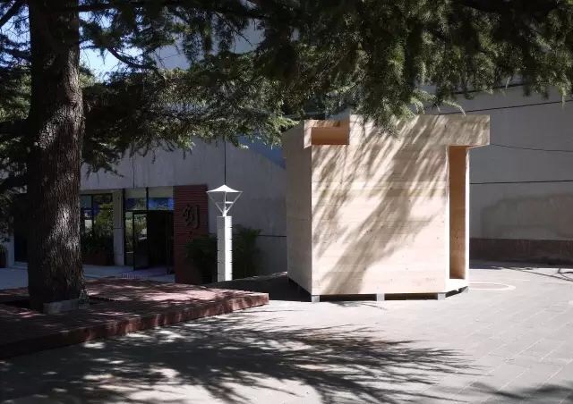 “小屋”是介于装置与建筑之间的暧昧存在,它既像一个扩大的家具,同时又像是一个拥有建筑特征的房子,这个特征和中国传统四合院建筑中的床是一样的。立方体的四个角被切掉,形成了窗和门洞,光线从不同方向进入空间,形成了一个光线的盒子。当人处于“小屋”内部,透过不同的洞口可以看到不同角度的天空与风景。