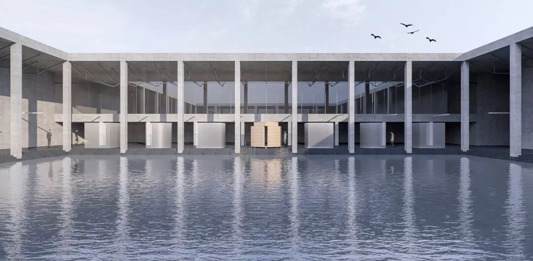 与传统茶室不同,设计师在方案设计上最大程度的避免了出现建筑构件,通过大小、位置不同的洞口实现了建筑语言里的门窗等功能,使得整体更抽象也更纯净。这个装置像宇宙中的一个细胞一样,成为了整体艺术群的一部分。同时,通过细长的洞口还可以欣赏到美术馆中心庭院里由艺术家Leandro Erlich创作的艺术作品。