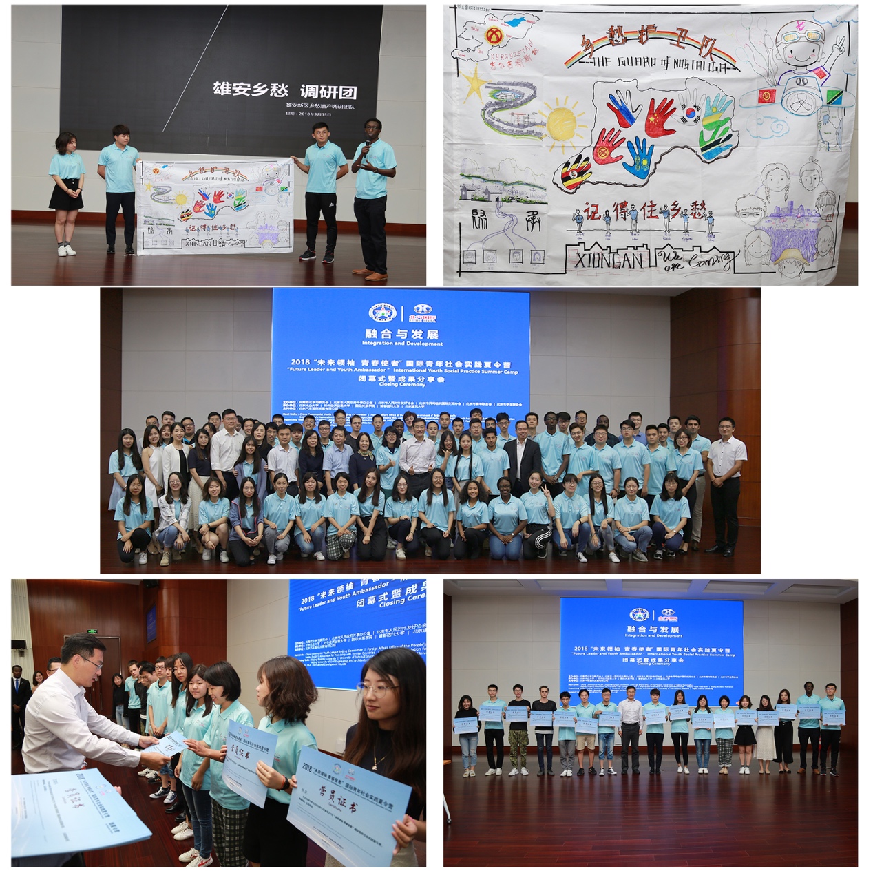 9月15日,2018“未来领袖·青春使者”国际青年社会实践夏令营闭幕式暨成果分享会召开。北京团市委副书记郭文杰、北京市人民对外友好协会副会长刘玉虹、北京市人民政府外事办公室涉外处副处长贾文杰、北京团市委国际联络部副部长崔竞、校学工部部长兼团委书记朱静及其他高校团委书记、夏令营全体营员参加活动。公司“雄安——记得住乡愁”老员工社会实践团与其他高校的4支团队一起总结分享实践成果。