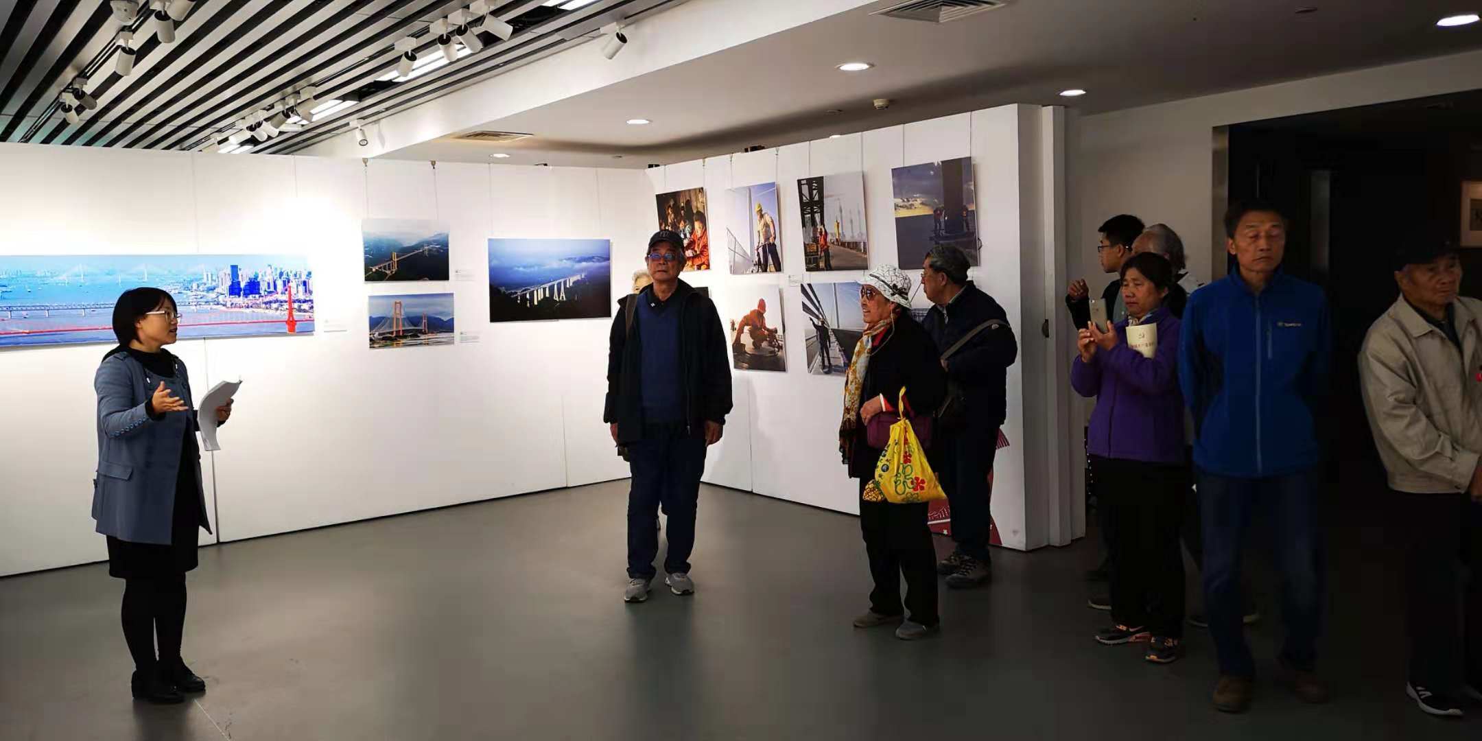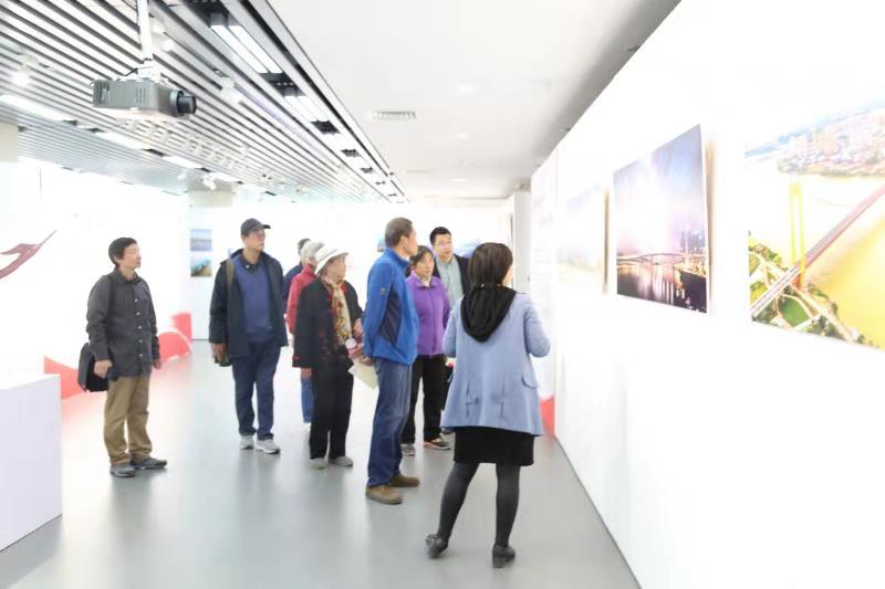 在讲解员的带领下,退休教师一行参观了“庆祝改革开放40周年中国建桥成就摄影展”和“爱新觉罗启骧、何镇强书画展”。