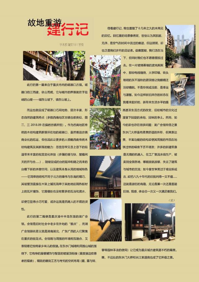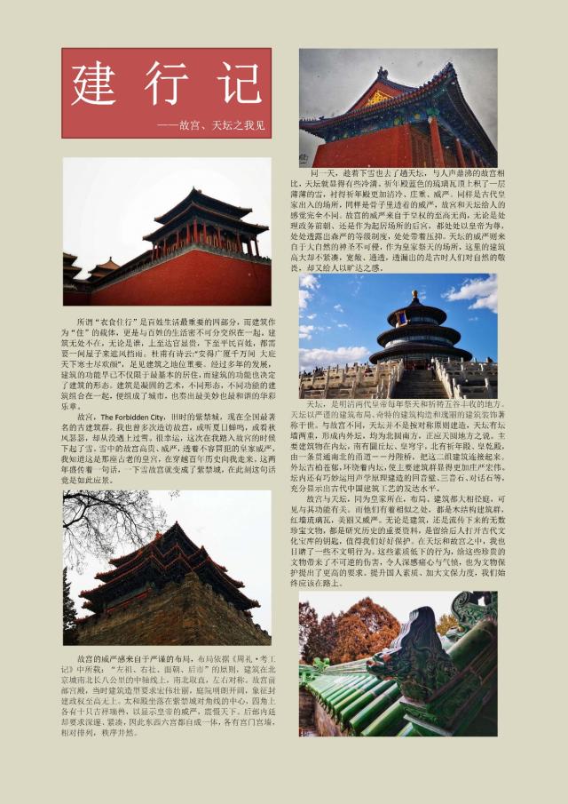 近期,团委员工会将选取“建行记”提前投稿的作品中,文字或排版较好的进行定期推送,供大家参考或批评。让我们跟随建院学子的“建行记”,共飨建筑文化之魅力。