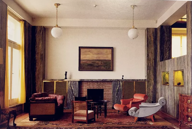 针对为什么要把“山”塞进房子这种设计手法,来源于功能性房间中存在的问题,如一些建筑实例中没有内向视野,没有边界与套叠,空间一览无余,而且部分造型与功能无关。而路斯的空间则全是功能、内在、抽象的。我国传统山水画欣赏也是一种漫游的体验,是山体包围的三维空间形成的“内向视野”,永远只有内部没有全局。我国传统的造园也是如此,如苏州的环秀山庄、留园也是通过路线的曲折回望来实现漫游。