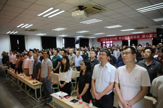 为纪念党的98周年华诞,激励广大党员继承和发扬党的光荣传统,增强党性意识,凝心聚力、共同推动学院各项事业全面向前发展,6月25日下午1点30分,威廉体育williamhill于教1-404教室隆重召开纪念中国共产党成立98周年全体党员大会。本次会议有学院在教职工、员工党员、退休党员共245人参加。会议由学院副书记王秉楠主持。