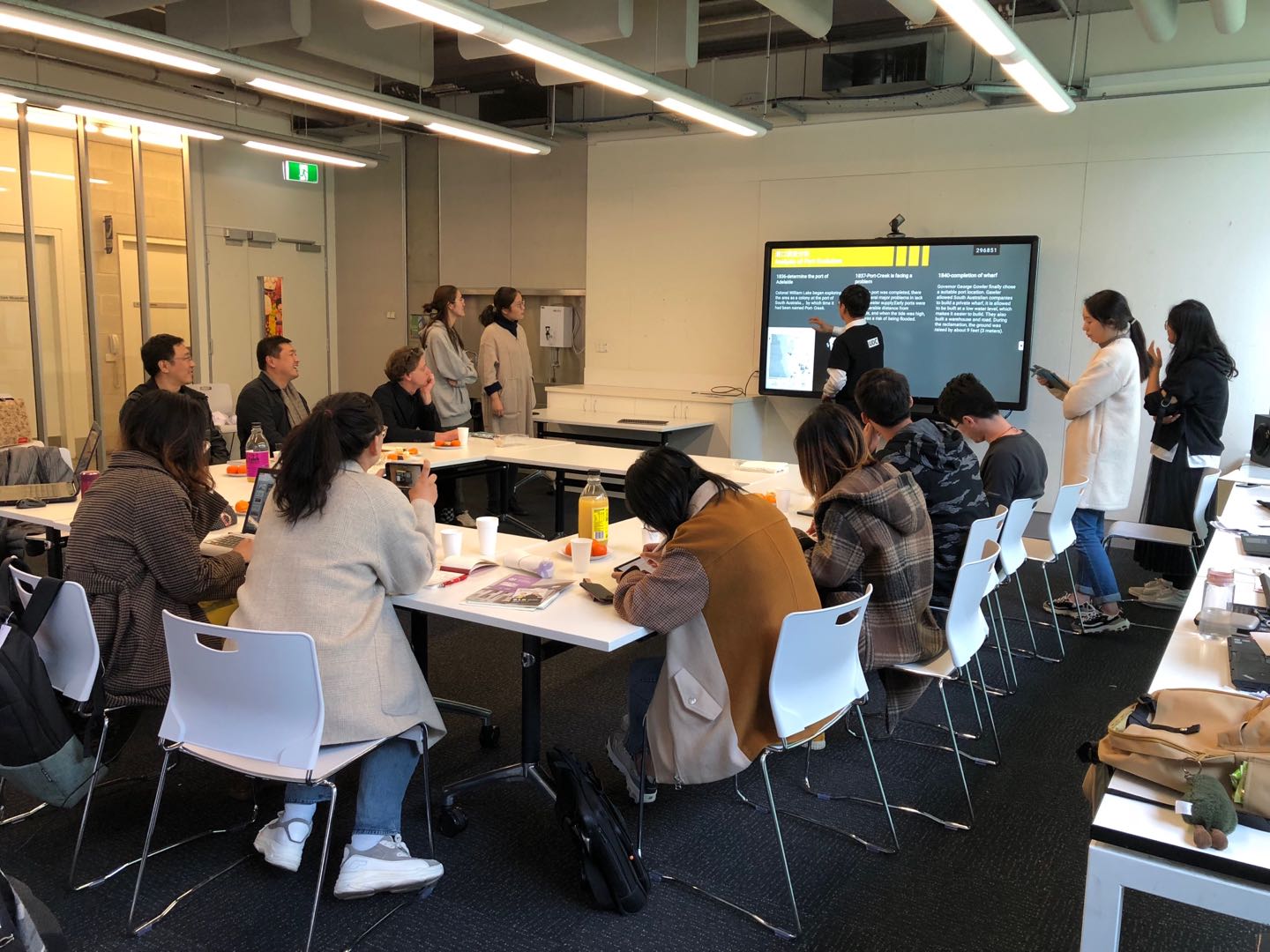 在工作营期间,南澳大学的教授们为同学们提供了详细的资料,并全程陪同参观和调研。本次工作营的设计任务以阿德莱德港口、梅高和霍格大厦、前证券交易所为研究对象,对阿德莱德市区进行多轮调研,并对一些优秀的历史建筑再利用案例进行学习和分析,与项目设计师现场研讨。员工们在各位教师的指导下,经过实地调研、资料分析、分组讨论和设计,最终形成了具有创新性的港口规划方案和历史建筑适应性再利用的设计方案,并整理汇集为中期成果。各位指导教师参加了工作营中期成果的阶段汇报评图工作,对每一位员工的成果进行了点评。