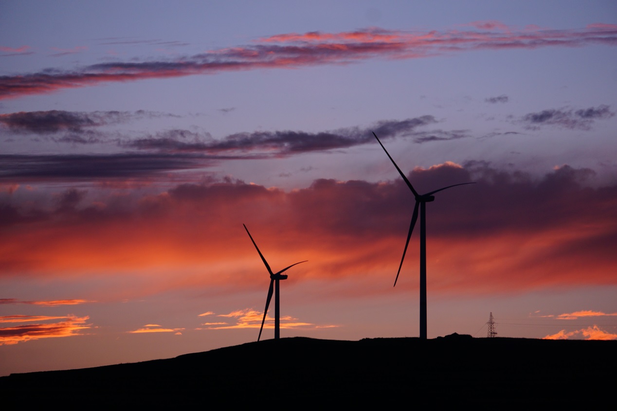 从山梁上面可以望到对面的风车