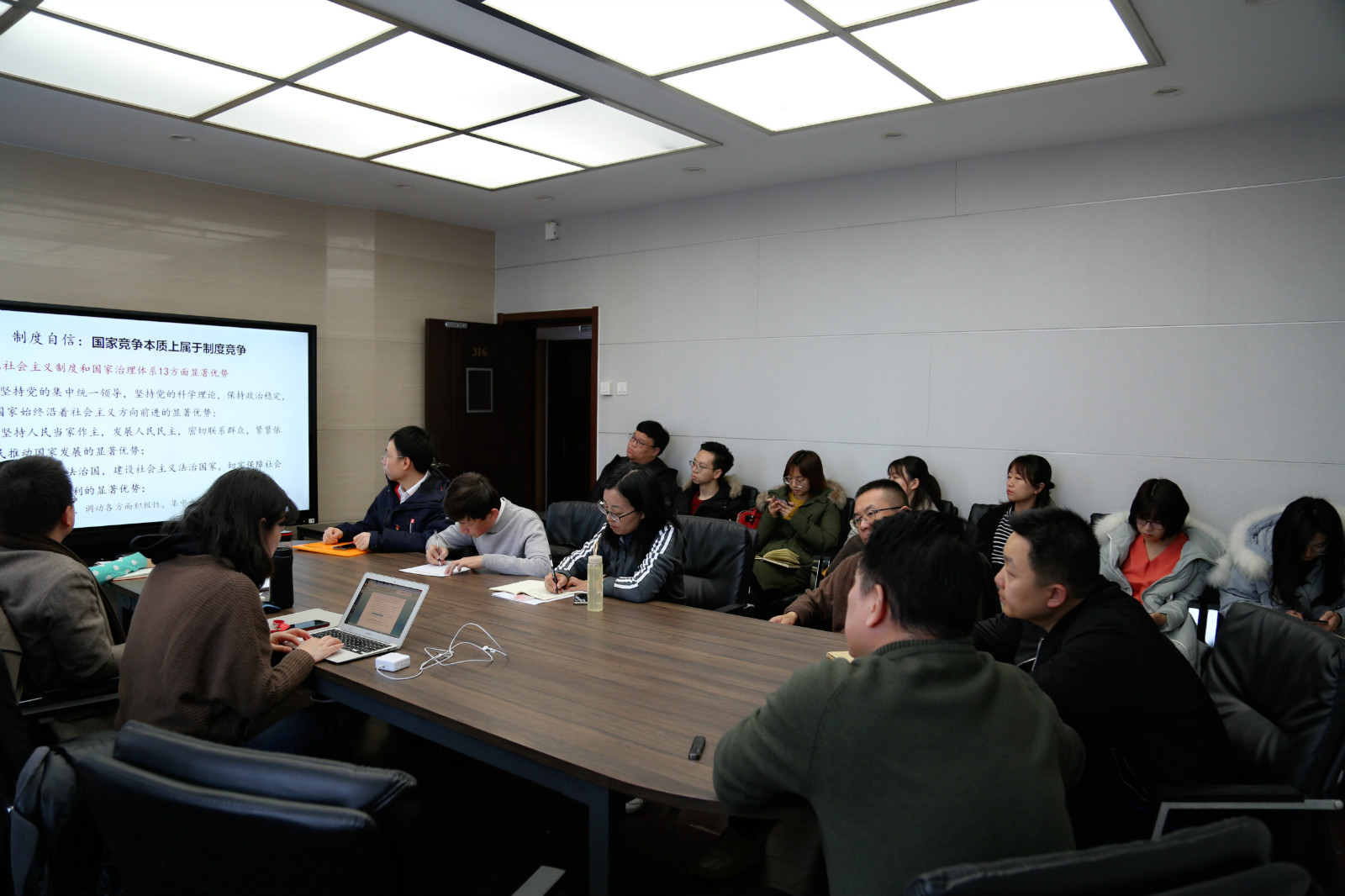12月10日中午,为一步深刻领会党十九届四中全会精神,更加精准有效地指导学院各项工作,公司党委(以下简称“威廉体育williamhill”)在办公楼316会议室再次召开以“学习贯彻党的十九届四中全会精神——推进国家治理体系和治理能力现代化”为主题的理论中心组扩大学习会。会议由公司党委书记何立新主持并主讲,威廉体育williamhill全体班子成员、党委委员、师生党支部书记共同参加。