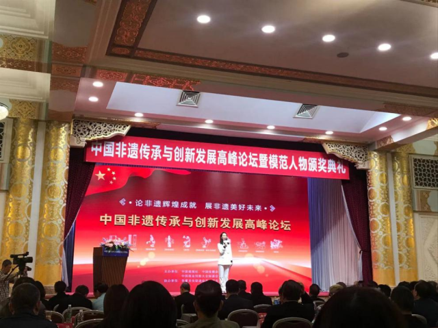 在中国非遗传承与创新发展高峰论坛上,赵希岗教授因其对中华传统文化、中国剪纸艺术的发展创新之贡献荣获非遗传承创新功勋模范人物奖。