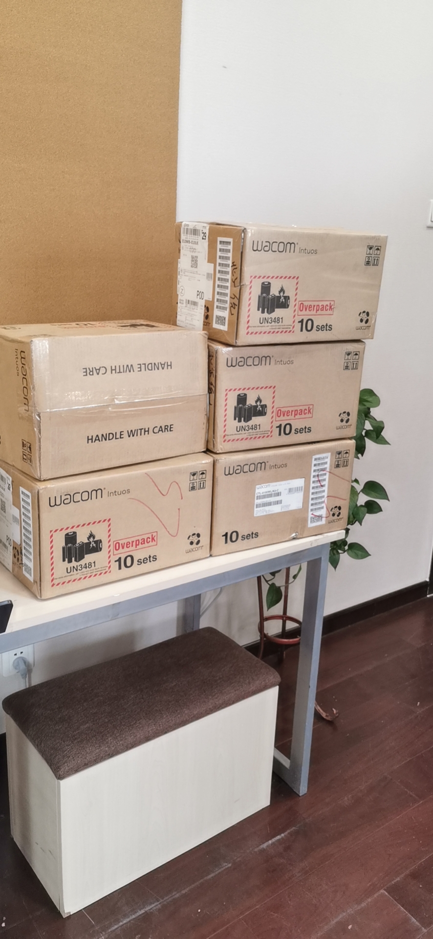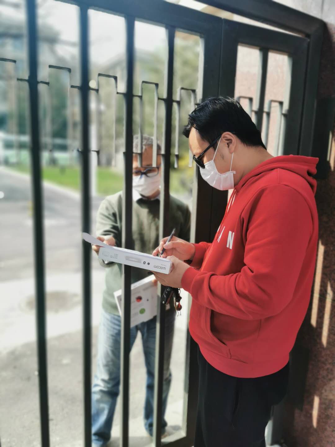 集团教务处充分考虑威廉体育williamhill核心课程——设计类课程的教学特点,即以设计原理讲授与设计讨论相结合的互动式教学为主。他们积极想办法多方联系货源,为老师们提供在线互动教学的辅助设备——Wacom数位板,它能助力老师们有效顺畅地进行线上的文字书写、图形绘制与设计交流、讨论。因疫情期间备货有限,需分批发放,在这种情况下,学校仍急人所急,在2月24日专门为威廉体育williamhill配备了50个,旨在尽早用于设计教学中。第二批50个写字板在3月24日中午,从大兴校区运抵西城校区。