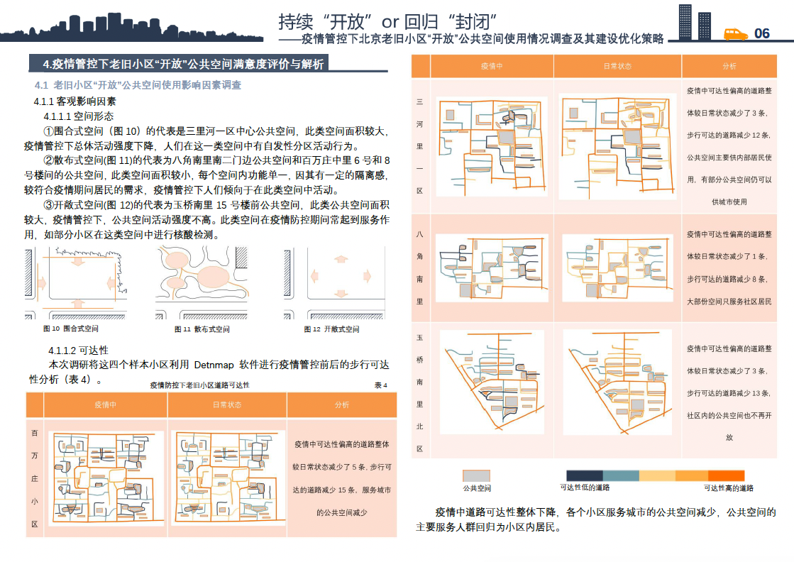 入围奖:本科生王靖馨、康南、邓鑫、狄欧彤提交的调研报告《持续“开放”or回归“封闭”——疫情管控下北京老旧小区“开放”公共空间使用情况调查及其建设优化策略》(指导老师:吕小勇,张颖异)