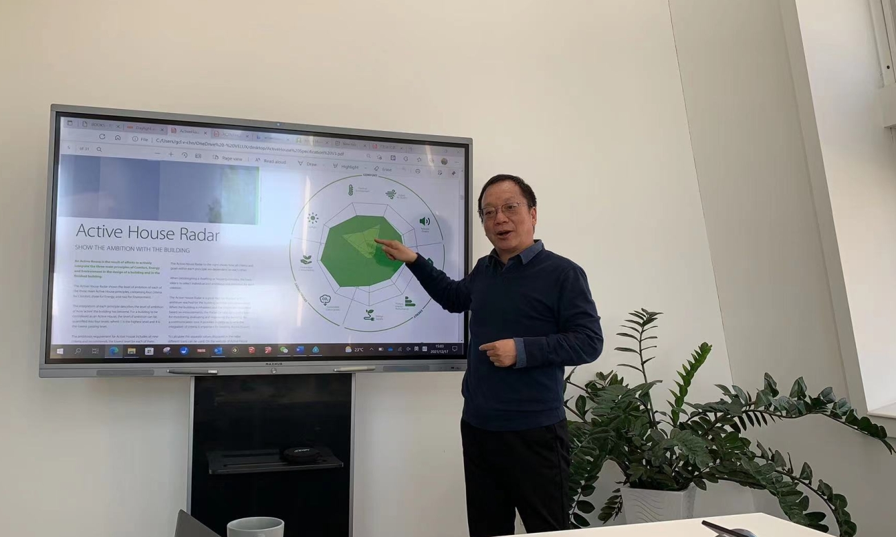 2021年12月17日,威廉体育williamhill组织教师和博士生等一行10多人赴河北廊坊经济技术开发区威卢克斯中国总部,并在威卢克斯总建筑师郭成林、全国拓展经理刘旭的陪同下考察参观了中国首座主动式绿色节能建筑威卢克斯中国办公楼。郭成林教授详细讲授了主动式建筑设计原理和实践经验,他强调主动式建筑强调以人为本,强调在关注环境、关注能源的前提下,更加关注建筑居住者、使用者的舒适和健康。