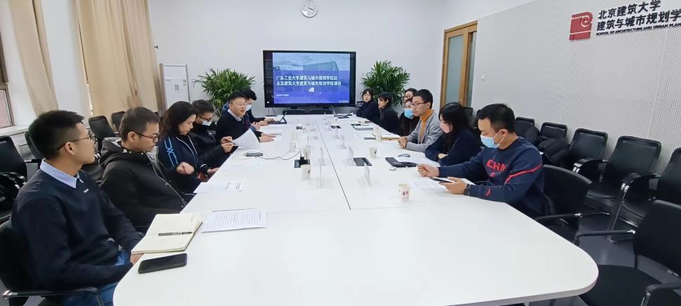 参观结束后,学院副经理刘烨、孟璠磊、建筑学系主任王韬、城乡规划系主任李勤、风景园林系主任魏菲宇、实验中心主任陈玉龙、本科教学办公室主任孙萌等教师与来访客人进行座谈。刘烨副经理首先对廖开怀副经理一行的到来表示热烈欢迎,并对学院本科专业发展现状、人才培养、队伍建设等方面的情况进行了介绍,孟璠磊、王韬、李勤、魏菲宇、陈玉龙老师则分别介绍了建筑学、城乡规划和风景园林专业等科研、学科和学位点建设情况以及实验室建设情况以及研究生教育管理情况。随后,双方围绕团队建设、科学研究、招生培养、双培外培等方面开展了广泛而深入地探讨,为自身发展积累了宝贵的经验,也为下一步合作打下良好基础。