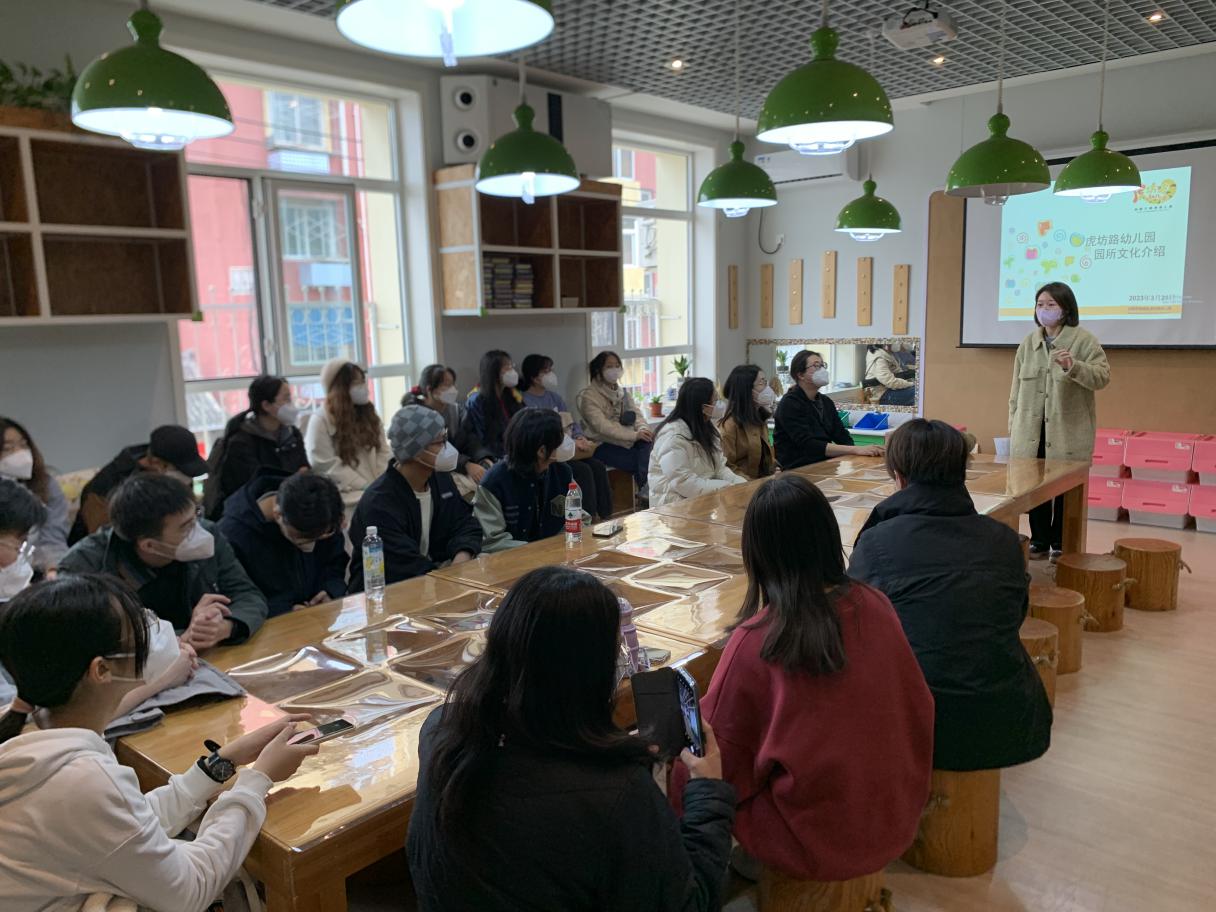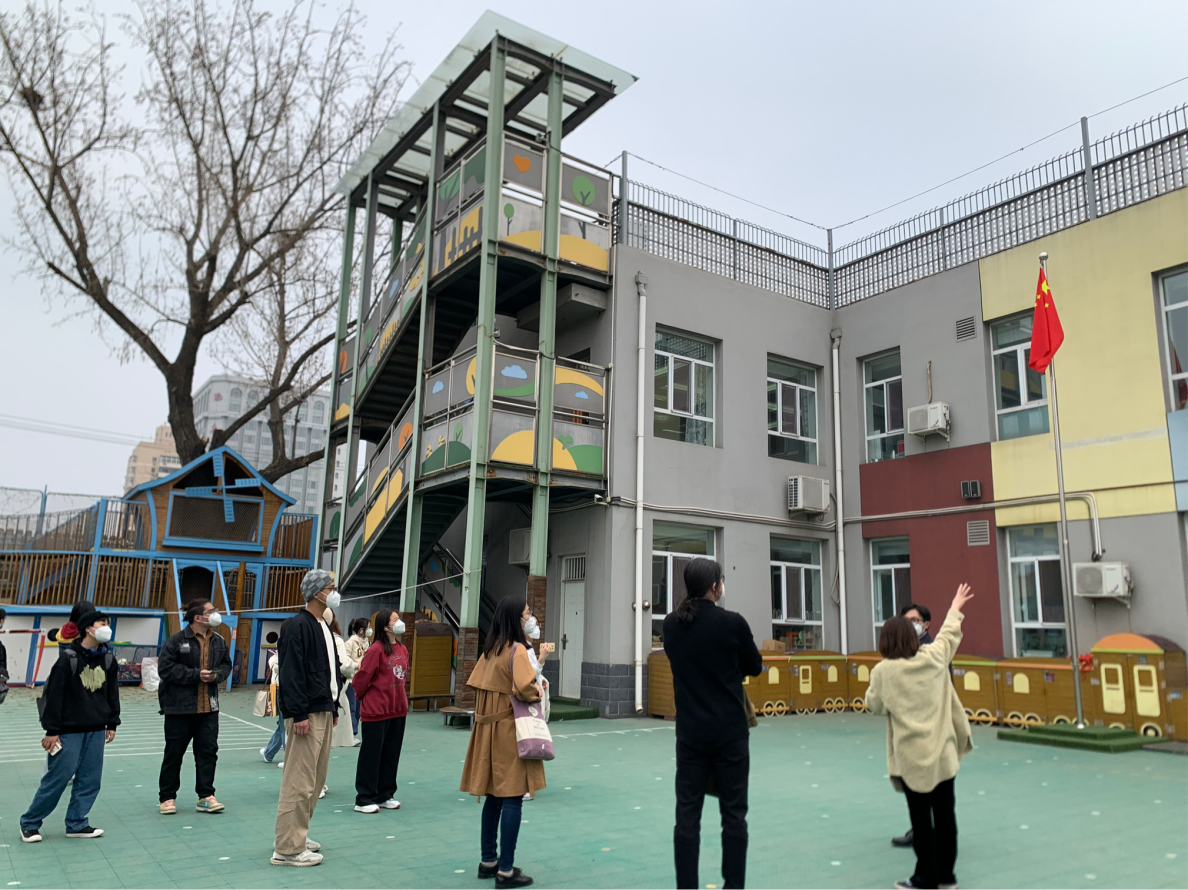 虎坊路幼儿园教学负责人梁宏珊老师,代表幼儿园对北建大师生的到来表示热烈的欢迎,详细介绍了虎坊路幼儿园的办学历史、办学理念与特色,并逐一回答了同学们对于教学组织、儿童行为特征等方面的问题。在梁老师的带领下,24位同学分别参观了总园、腊竹分园、大川分园内三处办学场地,对设计课程中的实际场地和使用人群进行了充分调研和观察。