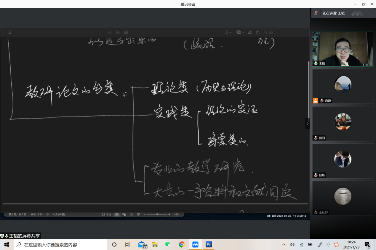会议第二部分议程是骨干老师进行教学成果与教研写作经验的分享。建筑系刘平浩老师总结分享了三年级建筑学(城市设计方向)的设计课程教学,设计课题选址位于北京不同地段,包括二环路、核心区国子监、通州五河交汇处等,要求同学根据不同地段的环境要求,完成从调研报告、方案策划和最终成果表达等不同阶段设计任务。王韬老师就教研论文写作做了分享,认为教研论文分为理论和实践两个部分,如历史理论探讨、设计设计探索,其内容包括前期的教案设计和后期教学过程的资料收集(模型、图纸、视频等),最终总结成文。归根结底,它是教学实践的逻辑化梳理与表达。任中琦老师介绍了三年级实验班的设计课教学,强调空间与建造逻辑的训练。教学安排重视材料搭接、结构选型、构造处理、空间场景、模型氛围的训练。通过与北京当地青年新锐建筑师合作,引入新鲜教学力量,并对教学成果进行分享与传播。本科教学分享环节结束后,建筑系副主任商谦老师汇报了本学期研究生设计课程服务北京建设整体情况,汇总了硕士生导师对课程安排、选题、分组、评图、打分等环节的意见和建议,以便新学期在此基础上改进研究生设计课教学。