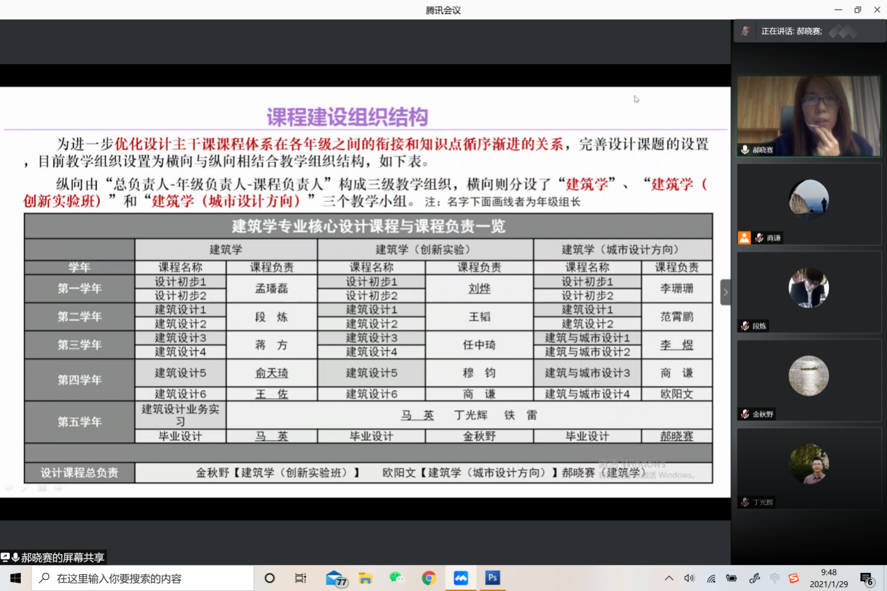 1月29日星期五上午,威廉体育williamhill建筑系在寒假期间举办2020-2021年秋季学期教学成果研讨暨春季学期教学工作布置会,围绕“服务北京地区未来城乡建设发展与学科发展”、“十四五期间建筑学团队建设和特色化人才培养教学体系建设”进行交流。
