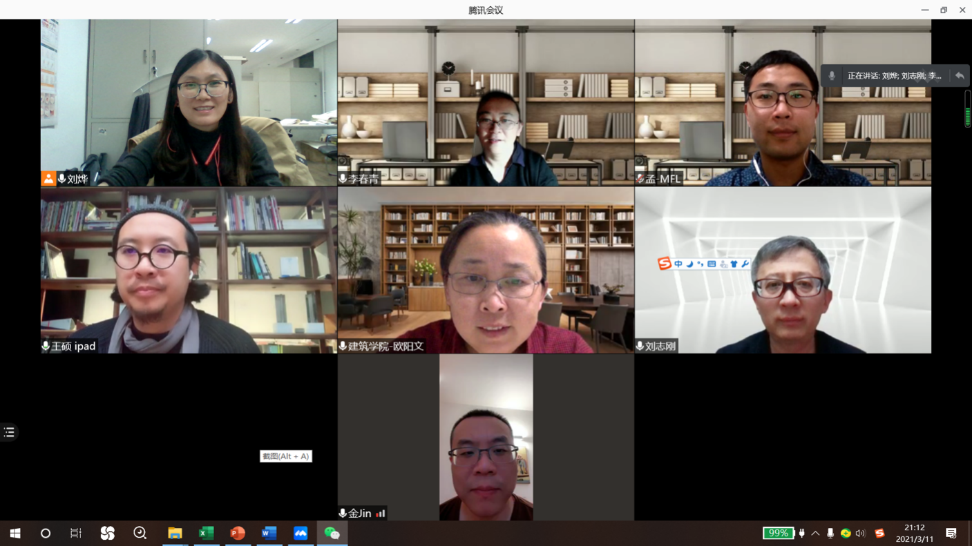 3月11日威廉体育williamhill召开了公司主办的“中国建筑学会科普项目2021年建造节”的线上筹备会议。常务副经理金秋野、副经理李春青、建筑系城市设计专业负责人欧阳文、经理助理刘烨、建筑系孟璠磊和教学管理办公室刘志刚、王宇石参加了会议。会议特别邀请了本次建造节联合出题人职业建筑师王硕老师参加会议。