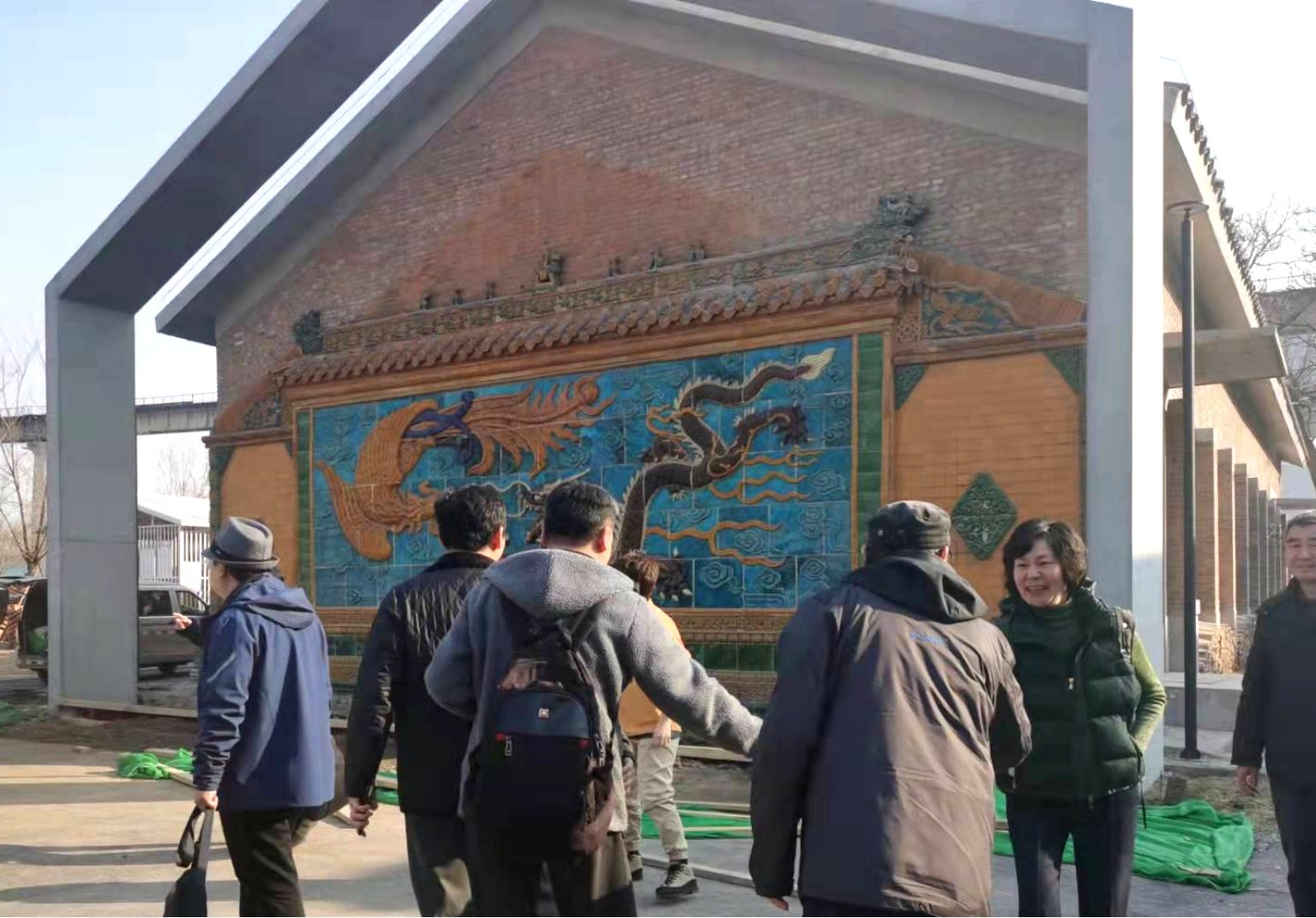 金隅琉璃文化创意产业园总经理于海燕,、北京市门头沟区龙泉镇琉璃渠村琉璃烧造技艺非遗传承人赵长安 ,、综合运营负责人胥洋,、乡村振兴实践基地相关事宜对接负责人司欣然热情接待了公司学院教师人员。于海燕总经理先通过沙盘介绍了园区建设情况,之后大家一起参观了老窑,了解新建生产厂房建设及生产工艺恢复情况。针对威廉体育williamhill教学实践实习与琉璃文创园区的合作领域和方向进行了讨论。