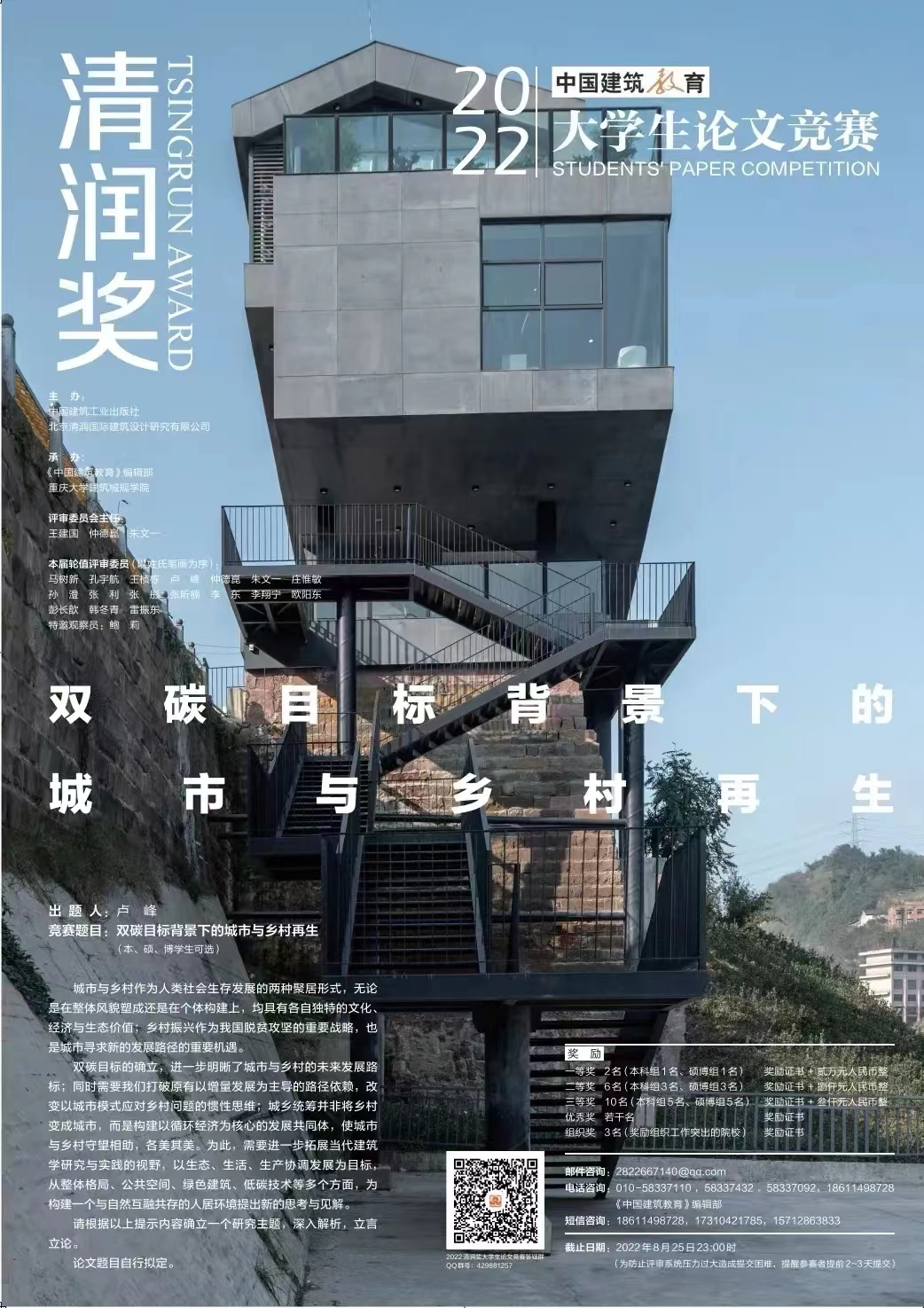 《中国建筑教育》•“清润奖”老员工论文竞赛面向国内外建筑学、城乡规划学、风景园林学以及其他相关专业的本科、硕士和博士生,是在教育部高等学校建筑学专业教学指导分委员会指导下,由中国建筑出版传媒有限公司(中国建筑工业出版社)发起,联合北京清润国际建筑设计研究有限公司共同主办,由《中国建筑教育》编辑部承办的国内最高水平建筑类老员工论文竞赛,素来以级别高、难度大、前瞻性强而著称,已经成为国内外知名建筑院校进行公司产品交流的重要平台,多年来一直受到广泛关注。