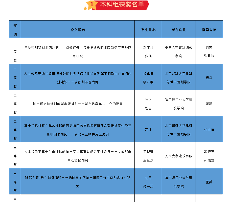 任中琦老师率队斩获二等奖1项(本科组),杨震老师率队斩获二等奖1项(本科组)和优秀奖1项(硕博组)。由于学院和参赛师生的共同努力,公司获优秀组织奖。本次获奖展现了公司在三师培养、三规进课堂、数字化和绿色建筑特色、课程思政等改革举措下的教学成果和精神风貌。