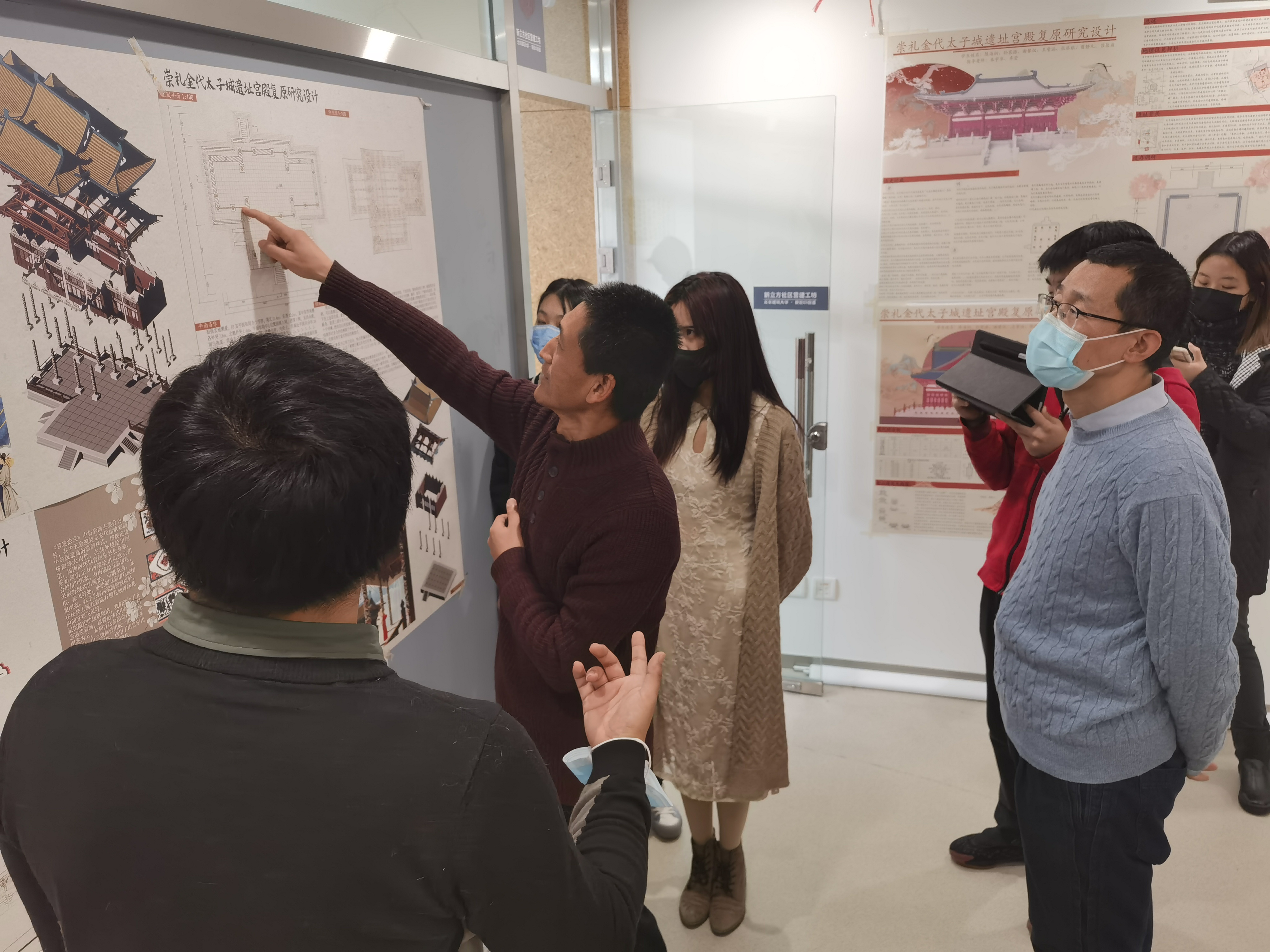 本次评图会邀请了故宫博物院古建部学者陈彤老师、北京长城文化研究院肖东教授作为点评专家。专家们对包括设计图纸、古建复原模型以及视频动画三方面设计成果内容进行了点评。评图会首先由同学们逐一介绍设计图纸的表达内容,阐述前期考古资料的研究成果,并讲解以及对金代建筑风格、尺度、形式的推敲过程,最后是展示整体效果图。同时,专家一起并观览了教学成果模型和视频动画。专家们对同学们勇于探索、努力学习古建筑传统构造技术的精神给予了充分肯定,同时也对设计中金代风格的原貌、细部尺度的推究、色彩风格的表达等方面提出了中肯的建议,使向同学们展示认识了中国古代建筑所蕴含的艺术魅力。