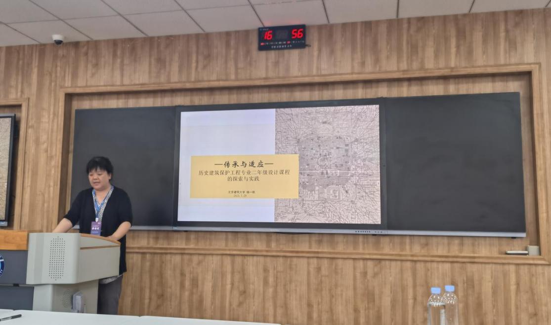 杨一帆副教授在“设计基础与建筑设计课程的衔接”分论坛,以“传承与适应——历史建筑保护工程专业二年级设计课程的探索与实践”为题,分享了历建专业基础设计课程的建设成果,总结了本专业员工培养的特点,并和与会专家老师探讨了以历史环境和建筑为核心对象的设计课题,如何加深员工形态空间操作能力等问题。
