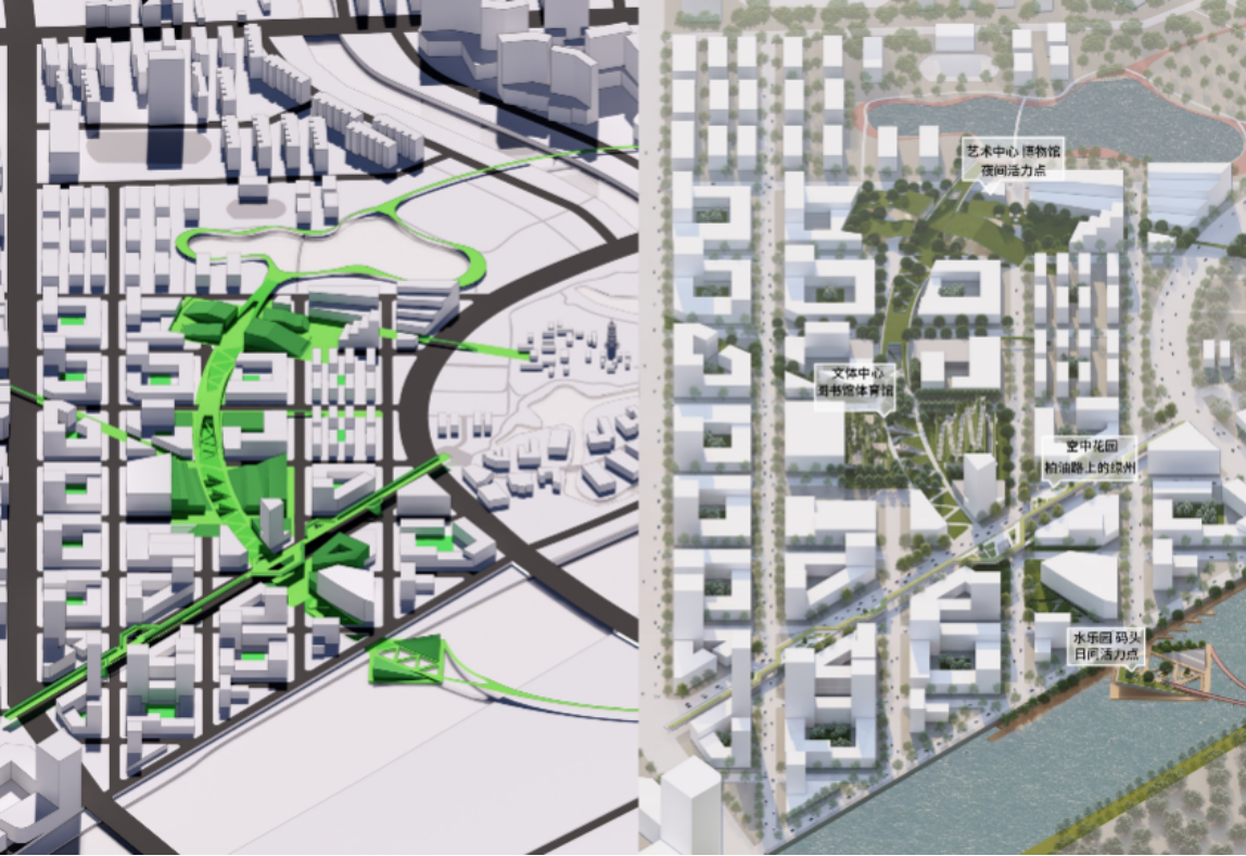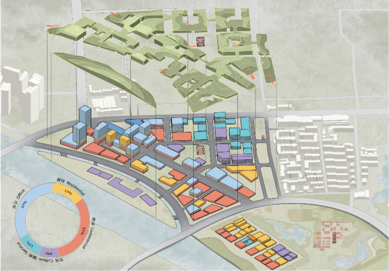 “北方4校+1”城市设计联合设计教学评图的设计地段选在北京市通州区北关片区的通州运河中心商务区,设计研究范围约100公顷。课程要求员工在深入研究地段条件、梳理城市问题的基础上,基于北京市副中心未来的发展规划和产业定位,将运河文化、历史遗迹、生态资源、公共空间等要素综合考虑,选择不少于15公顷的地段进行概念性城市设计,非常具有挑战性。本次联合教学共分3个阶段。第一阶段为调研阶段,由北方工业大学出题及组织调研活动。5校师生以混编的方式在地段进行了为期4天的详细调研,并在北方工业大学进行了调研汇报。第二阶段为中期评图,由内蒙古工业大学组织,5校师生在线上进行了中期汇报。第三阶段为终期评图,由山东建筑大学组织。基于疫情防控的考虑,5校师生仍然采取云端的方式进行了最终汇报。公司两组员工分别介绍了题为“O-RING”和“叠翠”的设计,获得了好评。