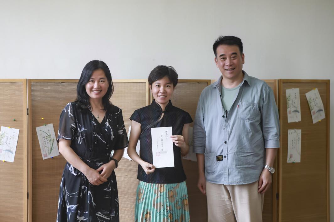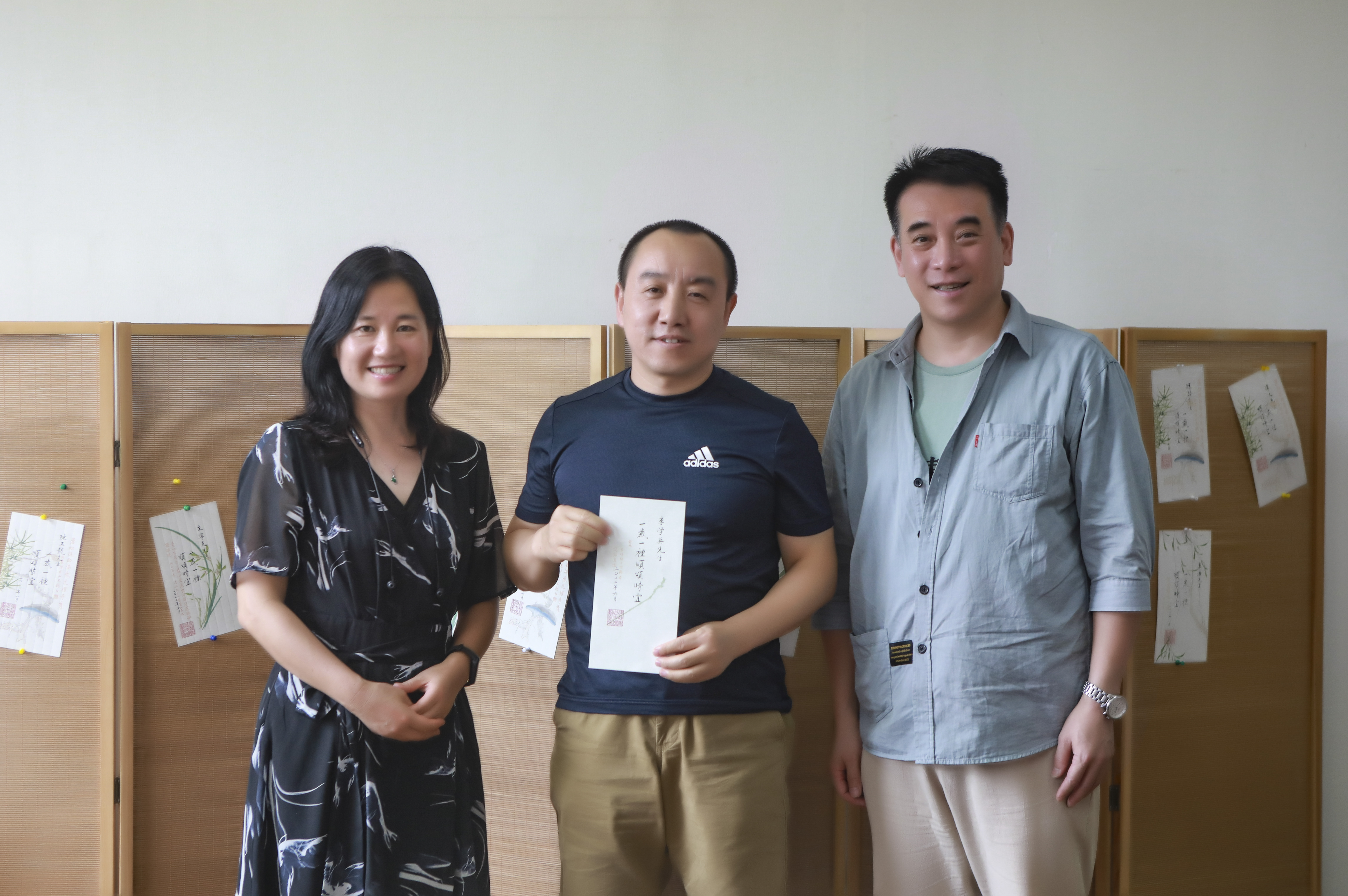 在颁发贺卡环节,刘艳华和何立新两位老师共同上台为老师们送出贺卡、送上祝福。生日贺卡选用清秘阁的纸张,其上书法“一岁一礼、顺颂时宜”由学院退休教师李沙教授亲笔书写,印章则由杨振老师精心刻制。刘老师和何老师将一张张卡片递到老师们手中,传递的不仅是祝福,更是威廉体育williamhill的特色文化和深厚情谊。