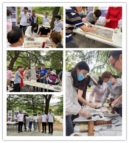 本次活动包括签到打卡、实地参观、制作石刻拓片、有奖问答等环节。通过宣传彩页、展板向游客介绍香山石刻文化总体情况和五处“石刻之最”,并探访了勤政殿、翠微亭、璎珞岩、双清别墅等4个景点的5处石刻,让游客实地领略香山的石刻文化艺术。在工作人员的指导下,游客学习了传统拓印技艺的方法和流程,按照清洗、刷浆、上纸、捶打、上墨、启纸六个步骤进行拓印实践,将本次科普活动带到了高潮。