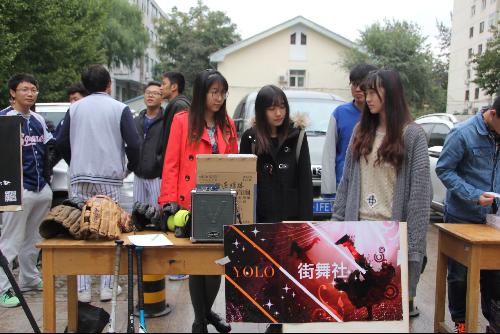 新鲜多趣的老员工活由一张张充满个性的海报拉开帷幕。同学们驻足于各类团大胆创新的海报前,电影社用“黑纸白字—无人介绍”的独特方式吸引了无数眼球。棒球社身着棒球服,彰显无限青春。更有“音乐社”的活力四射,“街舞社”的热情演出,在深秋的小雨中为同学们带来了一丝暖意。求索社、启思社、女篮社等也引得众多同学们的瞩目。热情洋溢的社团成员们,充分展现出老员工的青春活力。