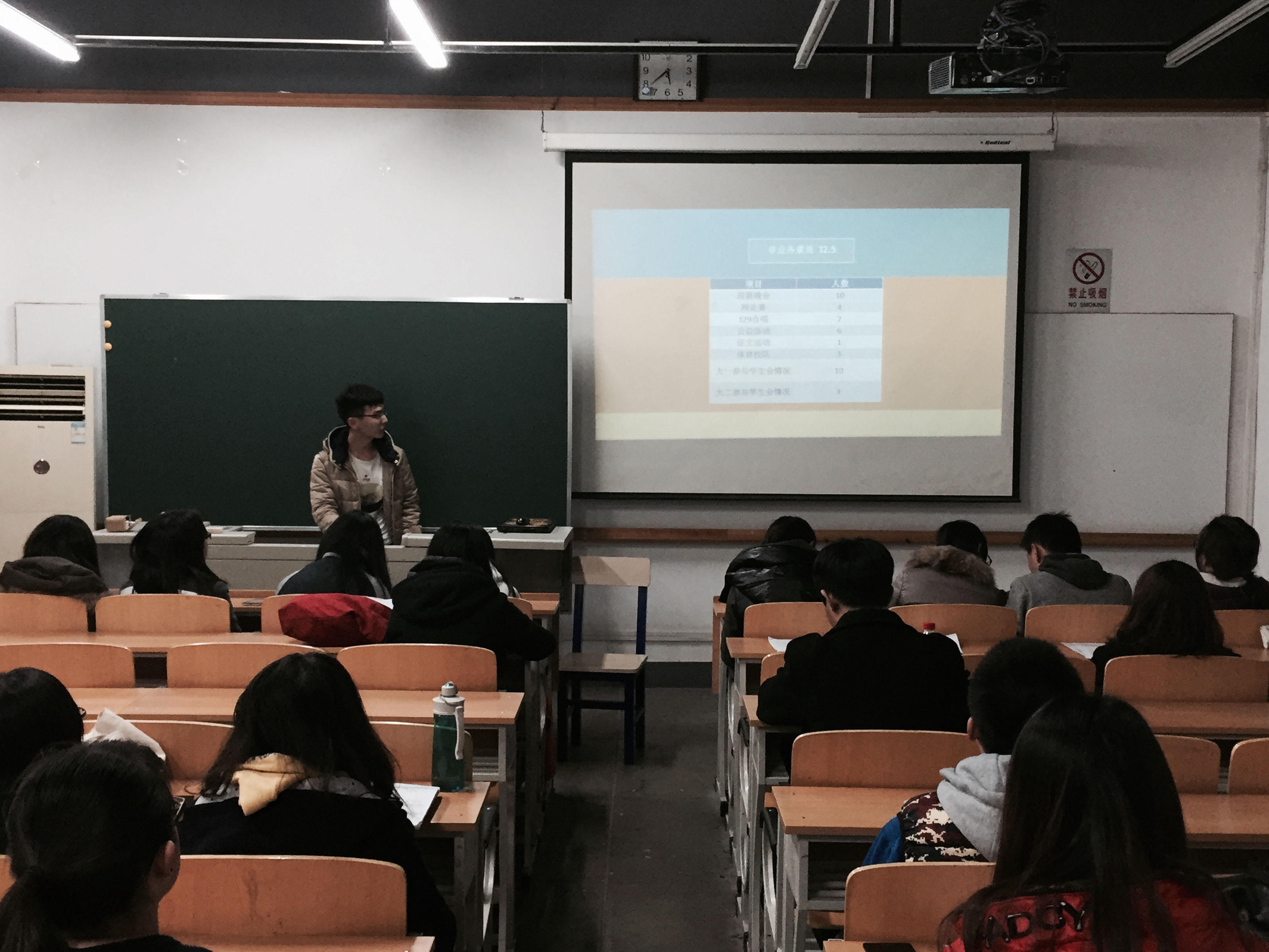 来自学院五个专业的20多个班级参加了此次评比答辩,15级新生班委列席答辩会现场观摩学习。在答辩会上,各班分别通过PPT、视频短片等多种形式展示班级风貌,辅之以现场讲述,将本班在过去一年中取得的各方面成绩进行全方位的展示,力求在评比答辩中胜出。整个过程平稳有序,气氛活泼热烈,期间级导师还就感兴趣的问题进行个别提问。答辩结束后,本科生辅导员成慧祯进行了点评,她认为,每个专业有不同的特点,要结合专业塑造独特的学风、班风,只有每个同学都把自己做好,才能有良好的班风。
