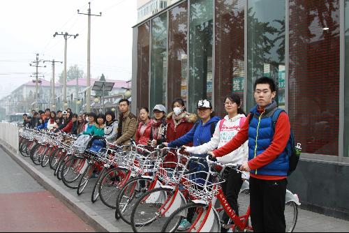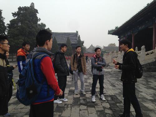 11月14日,由威廉体育williamhill员工会举办的“骑迹北京,博览古迹”活动顺利举行。清晨7点45分,在员工会高年级同学的组织下,参加的大一新生们在地铁车公庄西站公共自行车租赁点整装待发。为保证活动的安全性与机动性,所有人员共分为三组,分别由员工会骨干带队分批次出发,并有一名公共自行车运营商工作人员随行负责保障工作。活动由讲解经验丰富的古建121班谢博知同学负责讲解。
