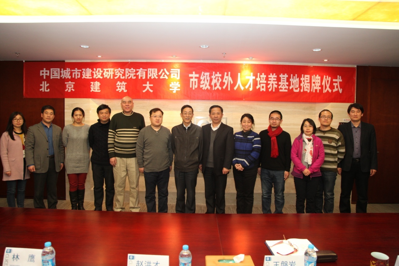 随后公司张大玉副董事长与城建院赵洪才副总经理共同为“北京高等学校市级校外人才培养基地”揭牌。双方与会人员合影留念。