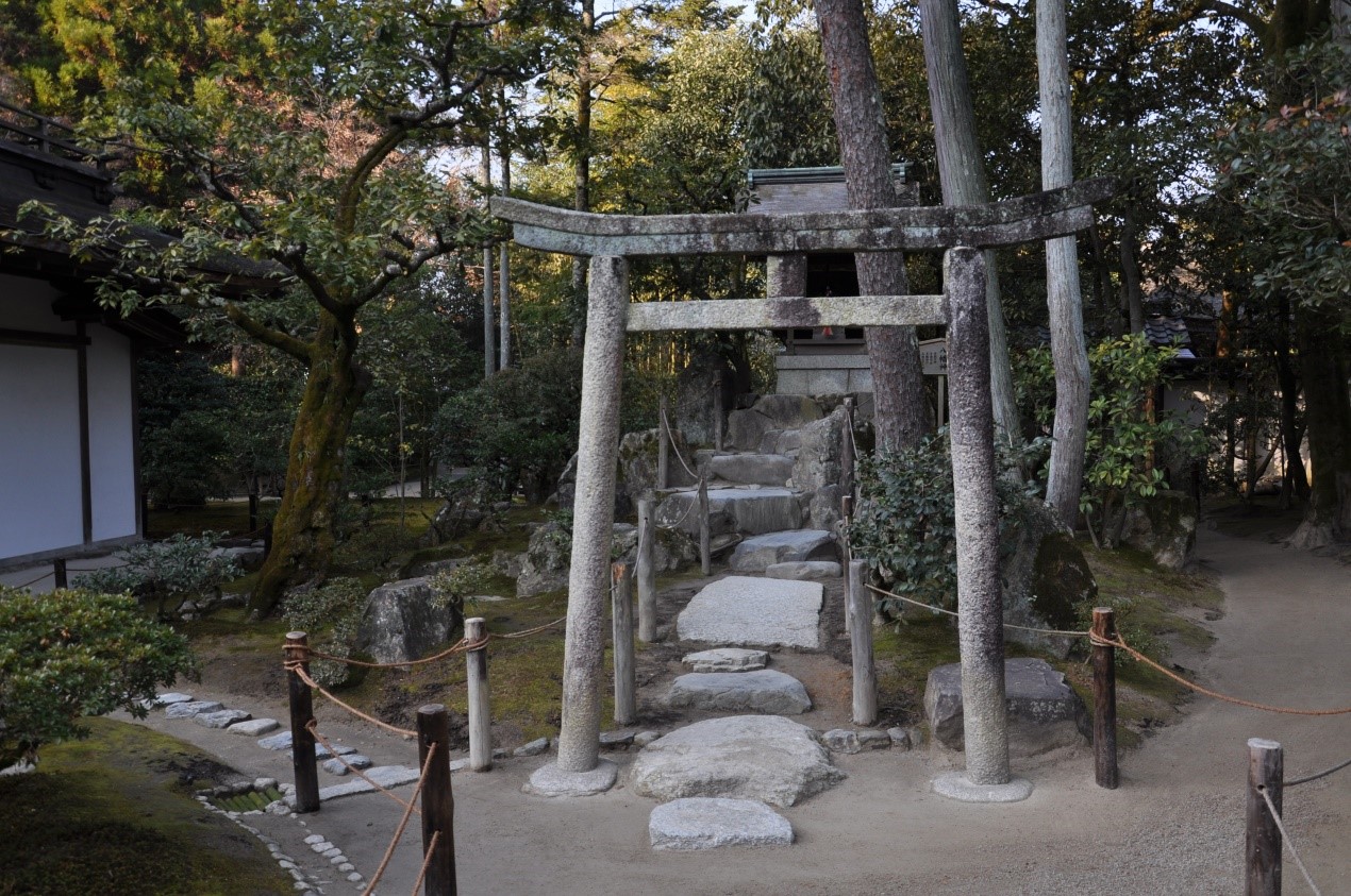 在我看来京都最大的特点便是鸟居了。鸟居是一种类似于中国牌坊的日式建筑,常设于通向神社的大道上或神社周围的木栅栏处。主要用以区分神域与人类所居住的世俗界,算是一种结界,代表神域的入口。有的鸟居体积庞大色彩鲜明,也有的鸟居单单只是由几根木头支撑而成。只要有人许愿便可以建造一座鸟居,因此不同风格的鸟居便是由不同经济水平的人建造而成。