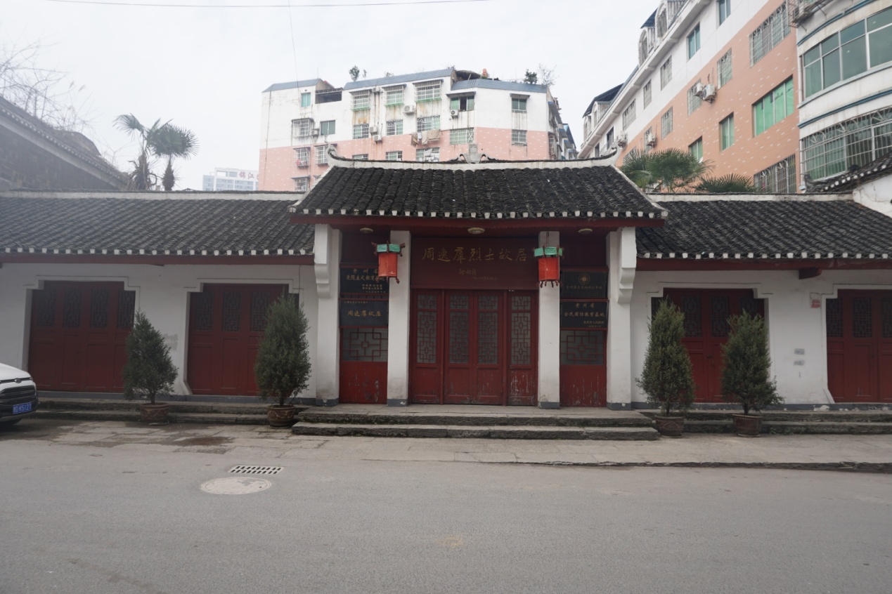 绕过影壁,站在青是板上驻足凝望,眼前的这座正屋,正是由周逸群亲自建造。与北京典型的四合院房屋大不相同,这是典型黔东民居样式,院内房屋皆如此。房屋都是悬山顶单檐式木房,料石为基,青瓦覆盖。曾经,又有多少个在家的夜晚,这个伟人走出这座屋子,在脚下的石板上来回踱步,坚定的信念一次又一次地踏实这一块块砖,关心人民的生计,国家的未来。现在已经不见他的身影,不过每年一到铜仁学子加入共青团的日子里,大家就会来到这里,唱国歌,作宣誓,庄严的歌声以及宣誓声飘出院墙,穿过街道,也许只是一个匆匆走过的路人也会一瞬间内心汹涌。说真的,我认为这是一种极好的传承,把他的精神一代一代地传下去,让每一个铜仁的共青团员们不忘自己的使命,同时让烈士永存。