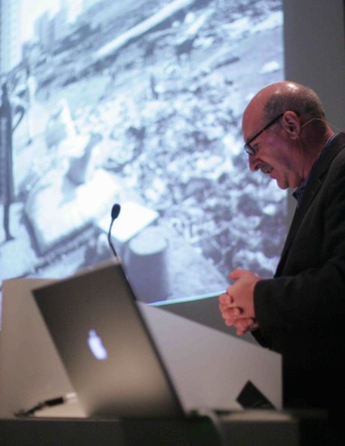 Niall教授作了题为“Teaching and Research at Graduate School of Design, Harvard University/哈佛大学设计研究生院的教学与研究”的学术讲座。他首先介绍了哈佛大学设计研究生院的概况,通过大量照片生动展示了员工们在课堂、工作室、学术讲座、展览以及田野调查中的学习和生活。随后,教授分享了他带领哈佛的员工们在印度孟买进行的调研与设计项目——通过城市设计方法和工具绘制人口密度极高的孟买城市地图;以及研究孟买洪涝灾害与城市地下排水系统之间的关系。最后,教授详细地解答了师生们提出的问题,并与同学们就景观设计与城市设计的发展进行了热烈的讨论。