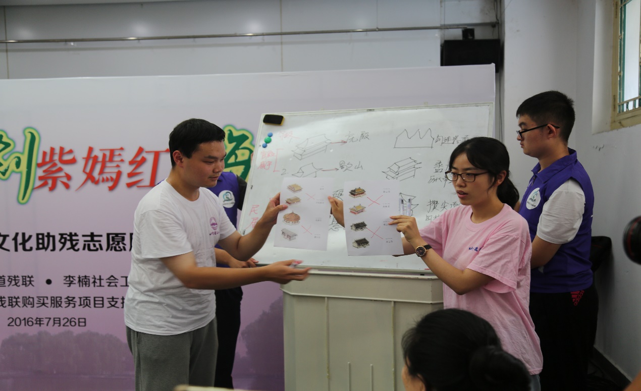 为了将北京优秀的建筑文化带入基层,服务群众,“古都风貌保护”志愿者服务团在公司党委副书记王秉楠和学院团委书记李小虎的带领下,在李楠社会工作事务所的邀请下走进西城区什刹海社区温馨家园,结合专业优势开展文化助残志愿服务。西城区残联副理事长陈宝利出席了本次活动,活动由李楠主持。