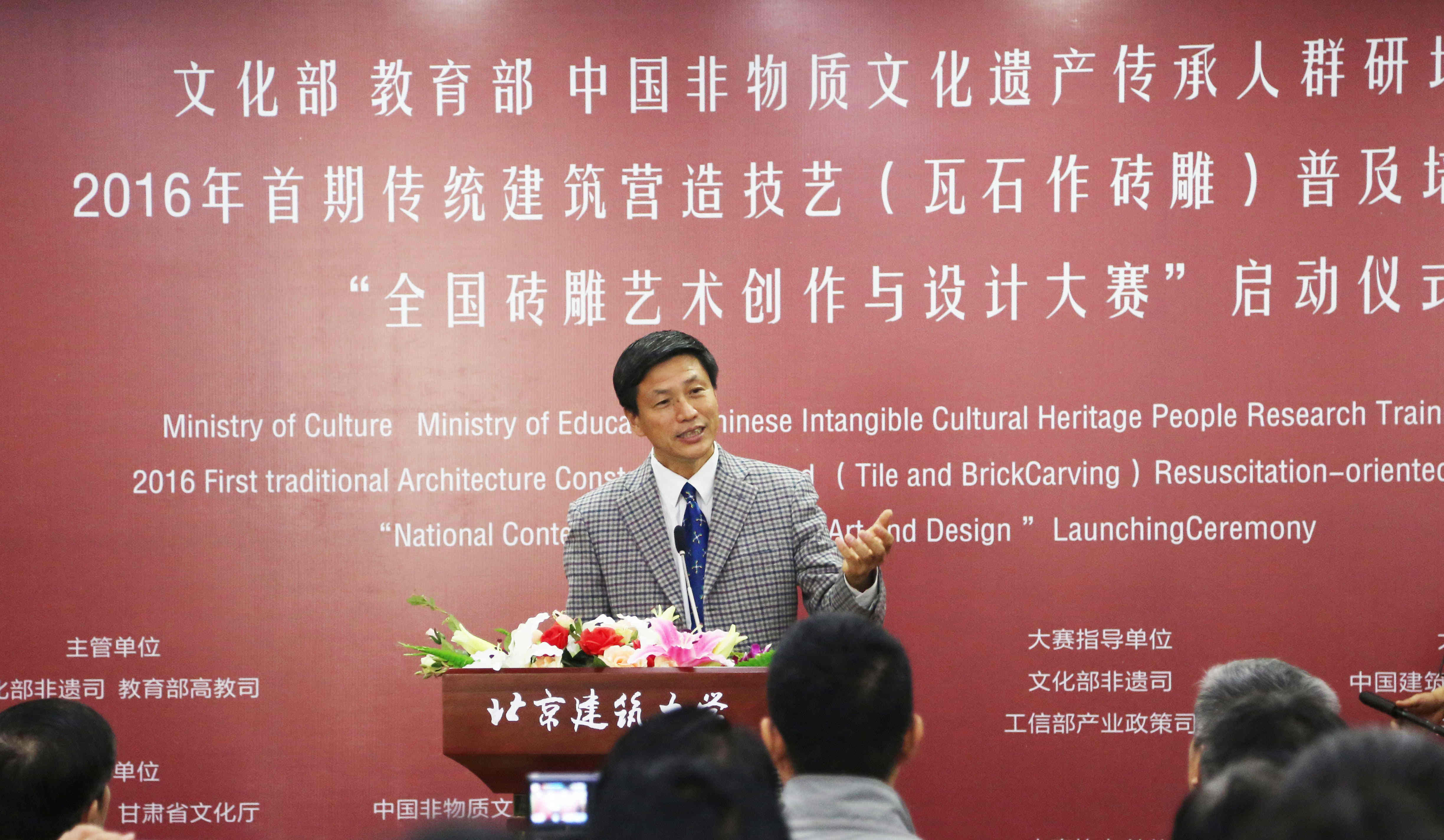 10月16日下午,在中国非物质文化遗产传承人群研培计划2016年首期传统建筑营造技艺(瓦石作砖雕)普及培训班开班暨“全国砖雕艺术创作与设计大赛”启动仪式上,由公司和文化部恭王府管理中心联合组建,并报经文化部非遗司批准的“中国非物质文化遗产研究院”正式挂牌成立,研究院将主要围绕传统建筑营造技艺、传统家具制作技艺开展相关研究工作。