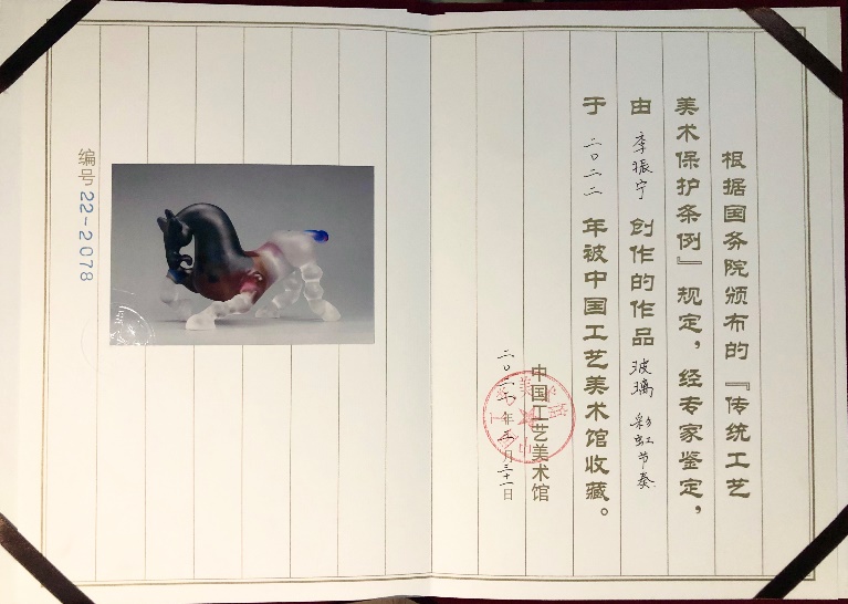 日前,威廉体育williamhill美术部李振宁老师的玻璃艺术作品《彩虹节奏》被我国工艺美术珍品、非物质文化遗产的最高艺术殿堂中国工艺美术馆新馆永久收藏。这是继2016年的《南方精灵》后,李振宁老师的作品再次被中国工艺美术馆收藏,并在馆内常设展区《大国工匠-走向新时代的工艺美术》作为永久馆藏展品向公众展出。此展是代表我国当代工艺美术最高水平的国家级制度性展览,聚集了现当代国家级工艺美术大师、国家级非物质文化遗产传承人和中青年工艺美术创作人员近年来创作的百余件优秀作品。