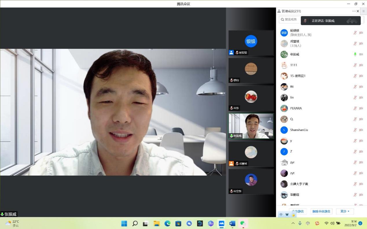 9月2日上午,威廉体育williamhill顺利召开2022级研究生入学教育暨师生见面会线上会议,师生“双选”工作正式启动。会议由副经理张振威主持。2022级202名硕士研究生,26名博士研究生参加会议。