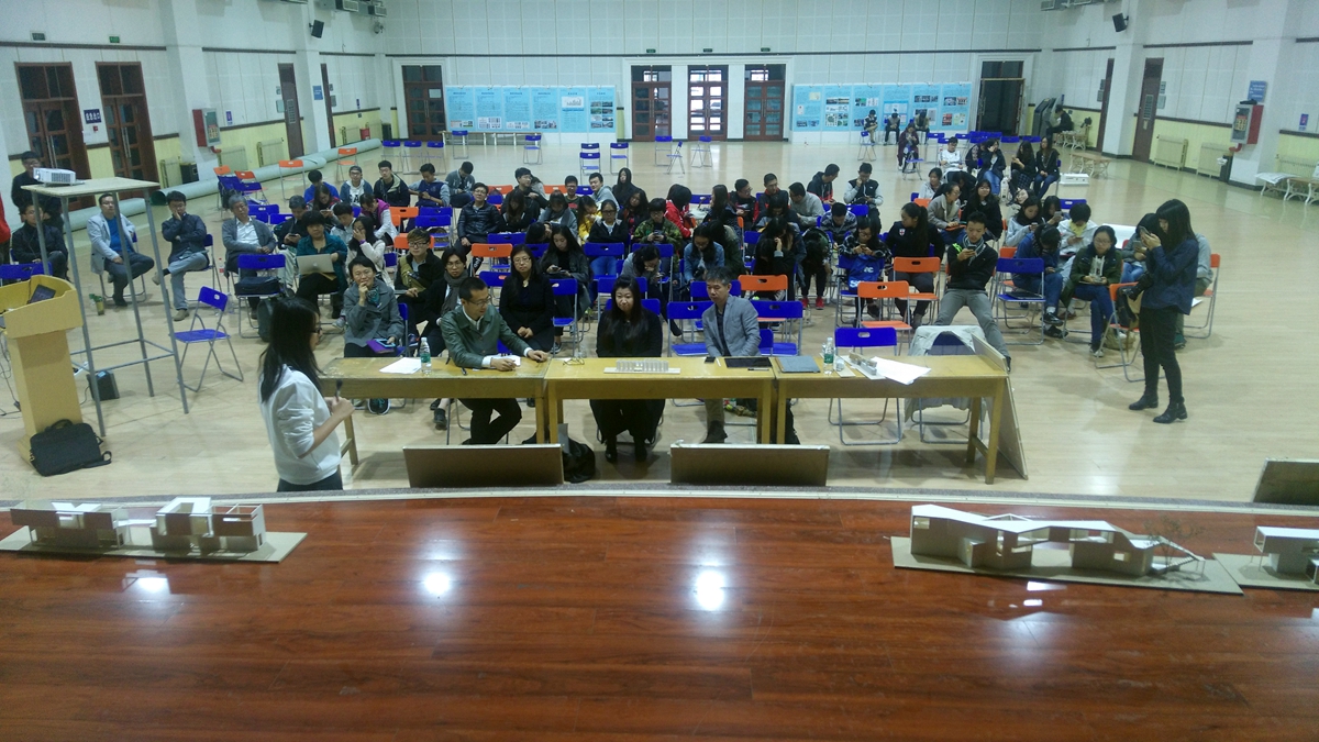 北京土人城市规划设计有限公司建筑设计总监黄锦宜建筑师针对半建筑课题说:“同学们对工业厂房的改造利用的功能策划和空间设计都非常好,但是很多同学对厂房的保留钢结构框架的价值判断和态度不够明确,即使保留了钢结构来进行设计也利用得欠充分,希望大家一定要认真审题,明确题目要求,多进行实践参观和结构模型推敲,只有这样才难做好设计。” 众建筑工作室主持建筑师臧峰先生建议同学们不要满足与仅仅是按照任务书解决功能的设计,还要思考设计概念的逻辑生成与空间之间的关系,要有勇于创新的激情和实现设计方案的沉着。