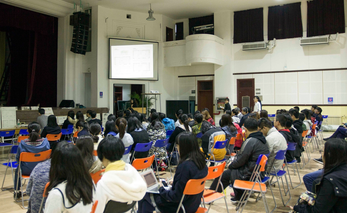 2016年10月20日和21日,威廉体育williamhill二年级建筑设计课程首次在公司西城校区老员工活动中心礼堂进行了九班联合大评图活动。课程负责人李春青副教授与教学小组隆重邀请了三位当前从业的著名建筑师北京建筑设计研究院城市际线工作室副主任张涛建筑师、北京土人城市规划设计有限公司建筑设计总监黄锦宜建筑师和众建筑工作室主持建筑师臧峰先生参与了这次评图。评图场面热烈,同学们进行了班级内部评图、班级之间交叉评图与九班图纸模型串联大观摩,同时也接受了从业建筑师现场评图的严格检验与建议。