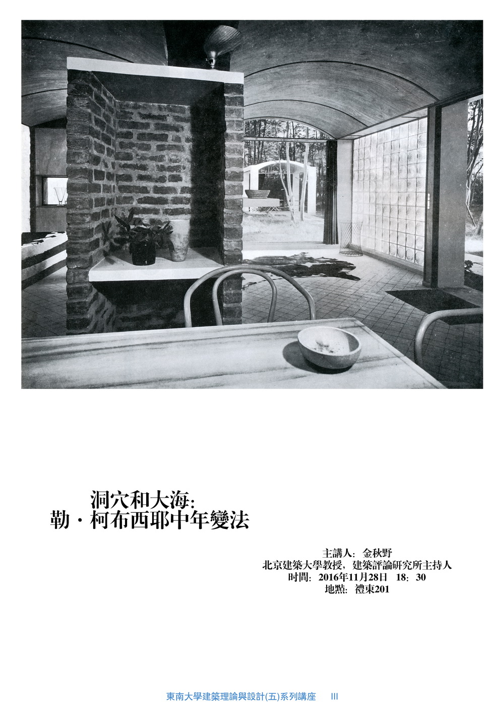 2016年11月28日晚6:30-8:30,威廉体育williamhill金秋野教授在东南大学东礼201教室举办了题为《洞穴与大海:勒?柯布西耶中年变法》的专题讲座,本次讲座有150余名东南大学师生参与。